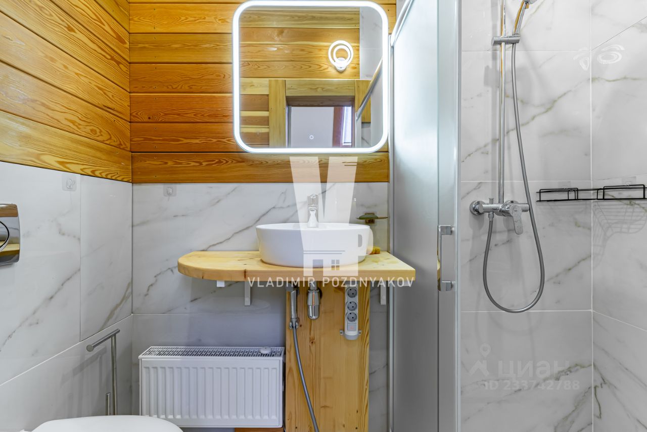 В окружении лесного массива новый современный коттедж. Дом построен по всем современным технологиям. Планировка дома: 1-й этаж теплый гараж на 2м/м,санузел с душевой, гардеробная, 2-й этаж просторная прихожая с гардеробной, кухня-столовая- гостиный зал, терраса, гостевой санузел, спальня с санузлом. 3-й этаж- спальня с санузлом, балкон. Коммуникации: магистральный газ, артезианская скважина, независимый септик ''Топаз'', интернет скоростной (выделенная линия), видеонаблюдение, умный дом с Алисой. На общей территории участка есть дом Собственника. Парковка на несколько машин, общая территория участка полностью огорожена глухим забором. Так же на на общей территории есть уличный бассейн, баня дровяная и футбольное поле.