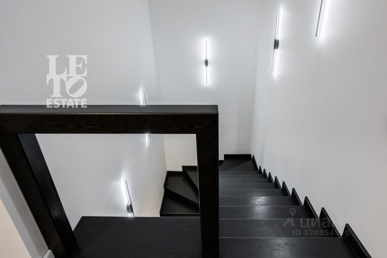 Планировка: Первый этаж: студия с выходом на террасу, 4 спальни со своими санузлами и гардеробными, гостевой санузел, кабинет. Цокольный этаж: две гостевые спальни с одним санузлом, зона отдыха (спортивный зал, хамам, кинотеатр/бильярдная), сезонная гардеробная, кладовая, блок для персонала с отдельным входом (2 спальни). Отдельно: гараж на четыре автомобиля с помещением для охраны, котельная.