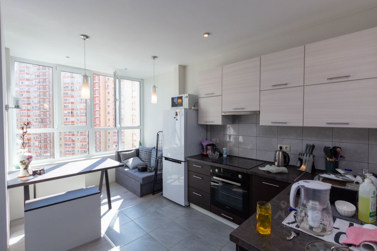 Квартира: - Сделан свежий ремонт. Встроенная кухня, включая: плиту, вытяжку, духовой шкаф. - На полу ламинат и плитка - Отличная планировка: просторная кухня, совмещенный санузел, функциональный коридор - Много мест для хранения вещей. - Окна выходят во двор.