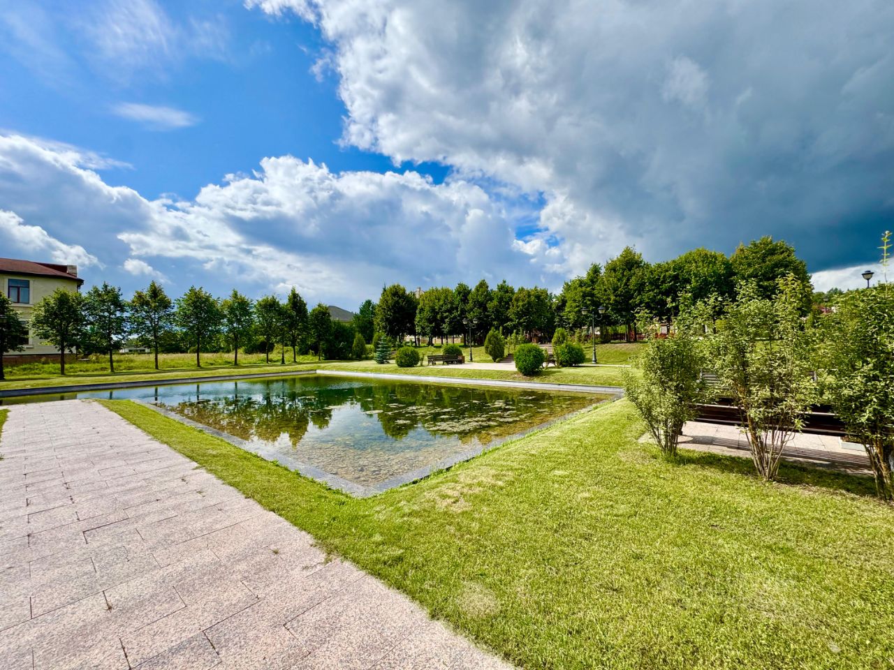 Коттеджный посёлок премиум класса Шато Соверен расположенный на опушке леса. Продается лесной участок площадью 31, 87 сотки. Участок находится в дальней приватной части посёлка, примыкает к лесу, с возможностью оформить в аренду ещё примерно 43 сотки. На границе участка все централизованные коммуникации: газ, электричество, вода, канализация, оптоволоконная линия. В посёлке вымощенные гранитной брусчаткой дороги, живописная парковая зона площадью около 1,5га, искусственные пруды, детский игровой комплекс, спортивные площадки, малые архитектурные формы. В ближайшем окружении несколько школ, детских садов, магазины, аутлет, рестораны, банный комплекс и много других объектов социальной инфраструктуры.