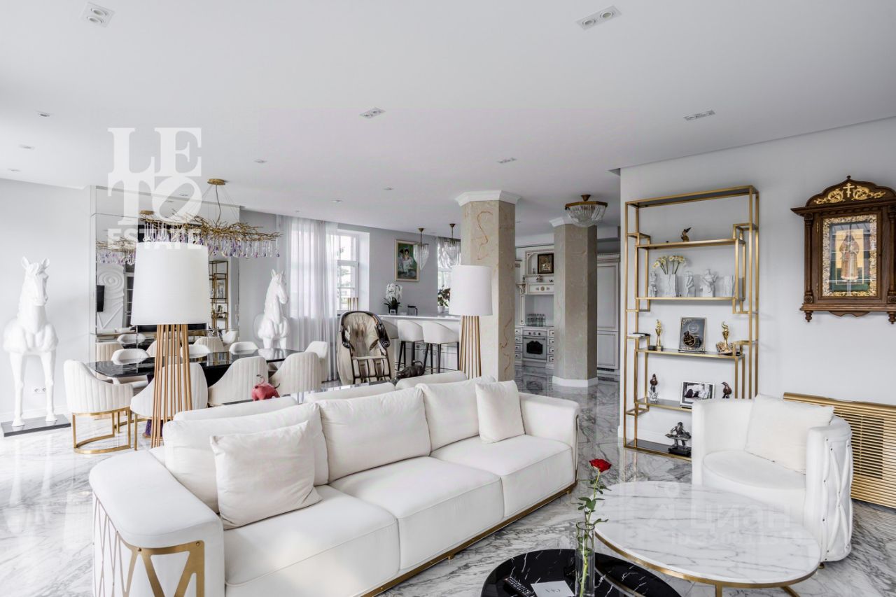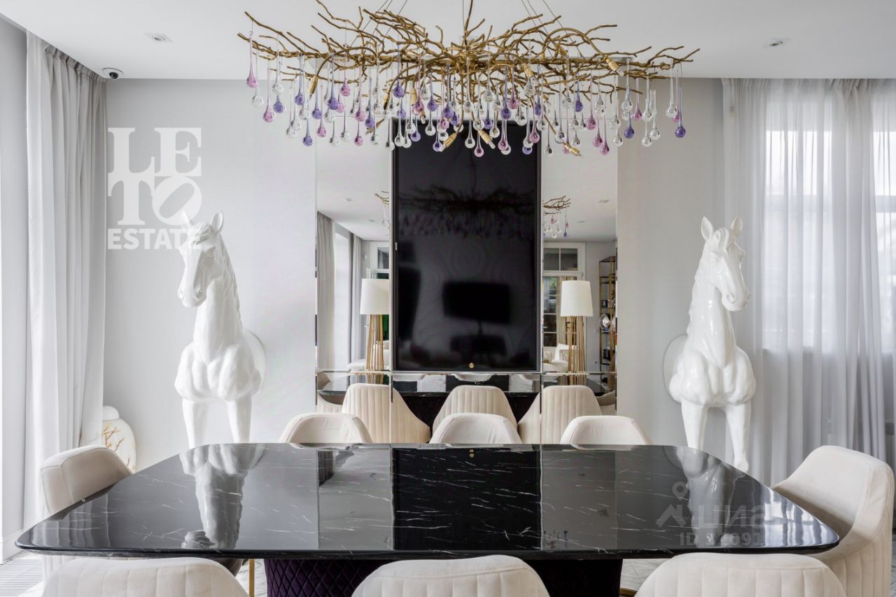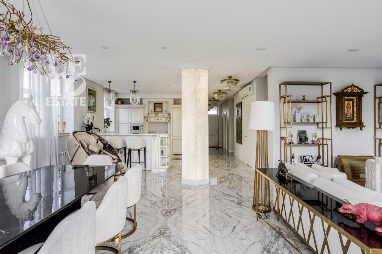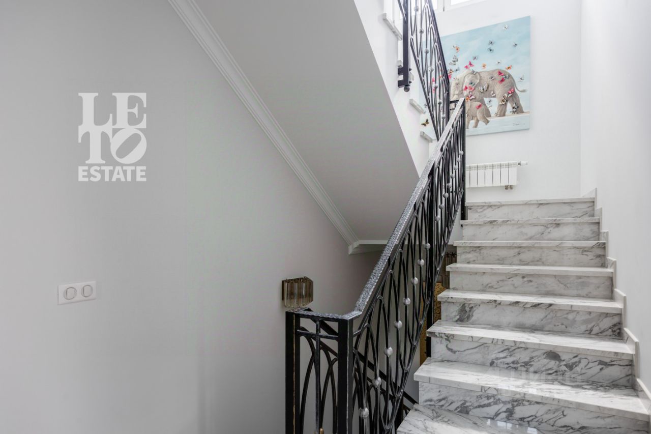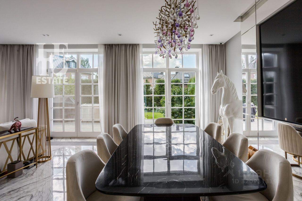 Арт. 111807538 Предлагается к продаже дом ''под ключ'' с мебелью площадью 550 кв. м в охраняемом коттеджном поселке Раздоры-2, расположенном всего в 4 км от МКАД по Рублево-Успенскому шоссе. Панорамное остекление первого этажа наполняет интерьер естественным светом и создаёт ощущение единства с окружающей природой, а продуманное планировка дома обеспечивает комфортное проживание. Дом расположен на участке площадью 10 соток правильной формы с хорошей инсоляцией. Планировка: 1-й этаж: прихожая, гардеробная, гостиная-кухня-столовая, кабинет, сауна, гараж на два автомобиля, котельная, терраса с зоной для барбекю. 2-й этаж: три спальни с санузлами и гардеробными. 3-й этаж: гардеробная, санузел, комната свободного назначения/спальня. Мансарда: спальня, санузел, помещение сводного назначения.