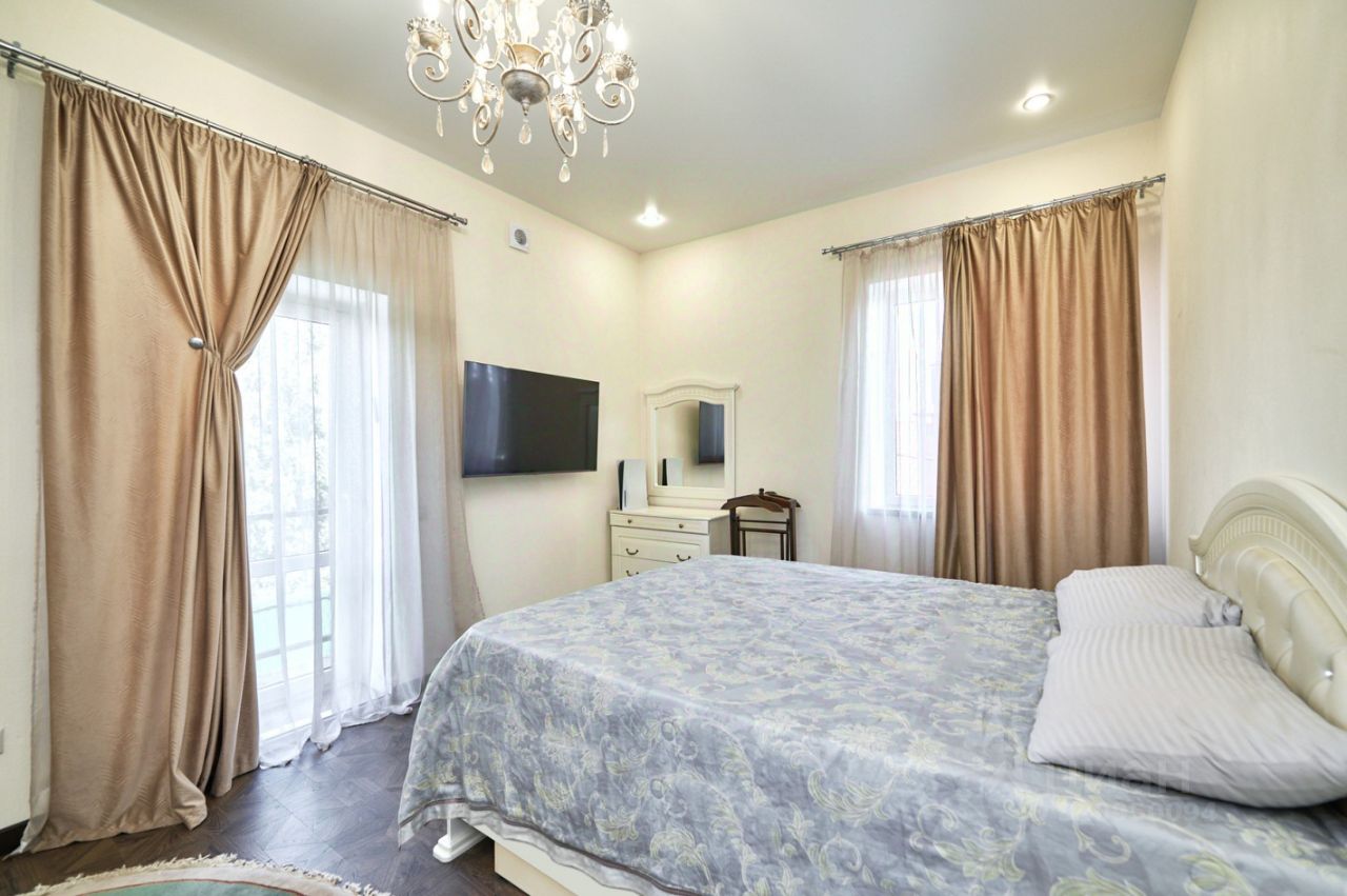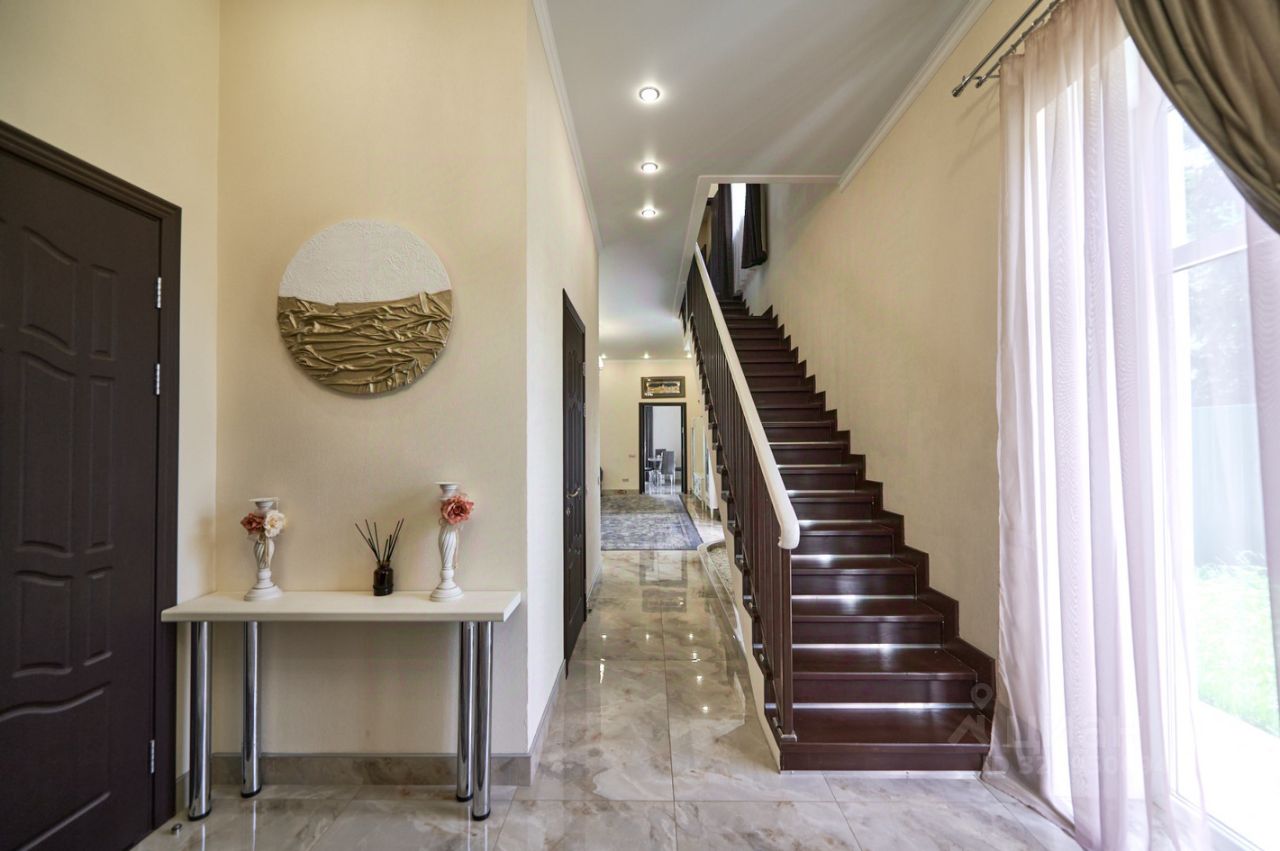 Дом построен на тёплой плите газоблок с бетонным каркасом, утепление пенопласт. Перекрытия монолитные. Лестница выполнена по металлическому, листовому каркасу, обшита деревом. Высота потолков на первом этаже 3,5 метра, на втором этаже 3 метра. В доме 2 балкона и везде панорамные окна. 3 изолированные спальни, одна из которых мастер спальня. Выполнен дизайнерский ремонт по индивидуальному дизайн проекту с применением дорогих, отделочных материалов и дорогостоящей мебелью на заказ. Кухня полностью укомплектована встроенной техникой, холодильник liebherr.