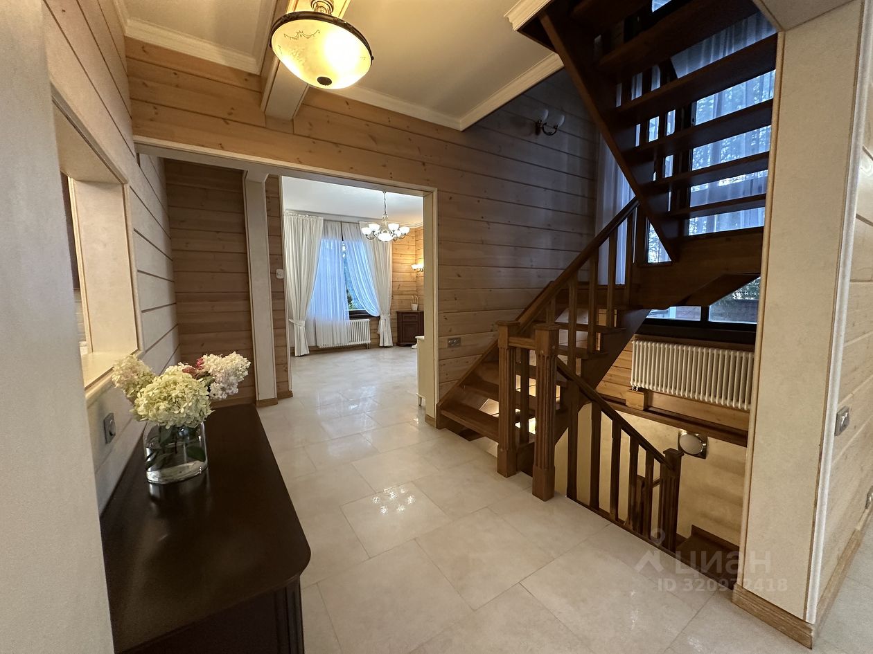 Новорижское, Ильинское, Рублево-Успенское шоссе, 20км, село Дмитровское, охраняемый кп Николина Поляна. 3-х уровневый Дуплекс с отдельным входом, сдаваемая площадь 300 кв.м, ухоженный участок 18 соток. Во втором части дуплекса проживает одна взрослая женщина, жильцов не беспокоит, присматривает за участком. Планировка: 1-ый этаж: холл-прихожая, кухня-гостиная с выходом на террасу, санузел с душевой. 2-ой этаж: 3 спальни (одна из которых с выходом на террасу), санузел с ванной. Цоколь: помещение свободного назначения, комната для персонала, санузел, прачечная, кладовая. Светлый, уютный дом, в отделке и декоре использованы только экологически чистые материалы. В каждой комнате/помещении много больших окон.