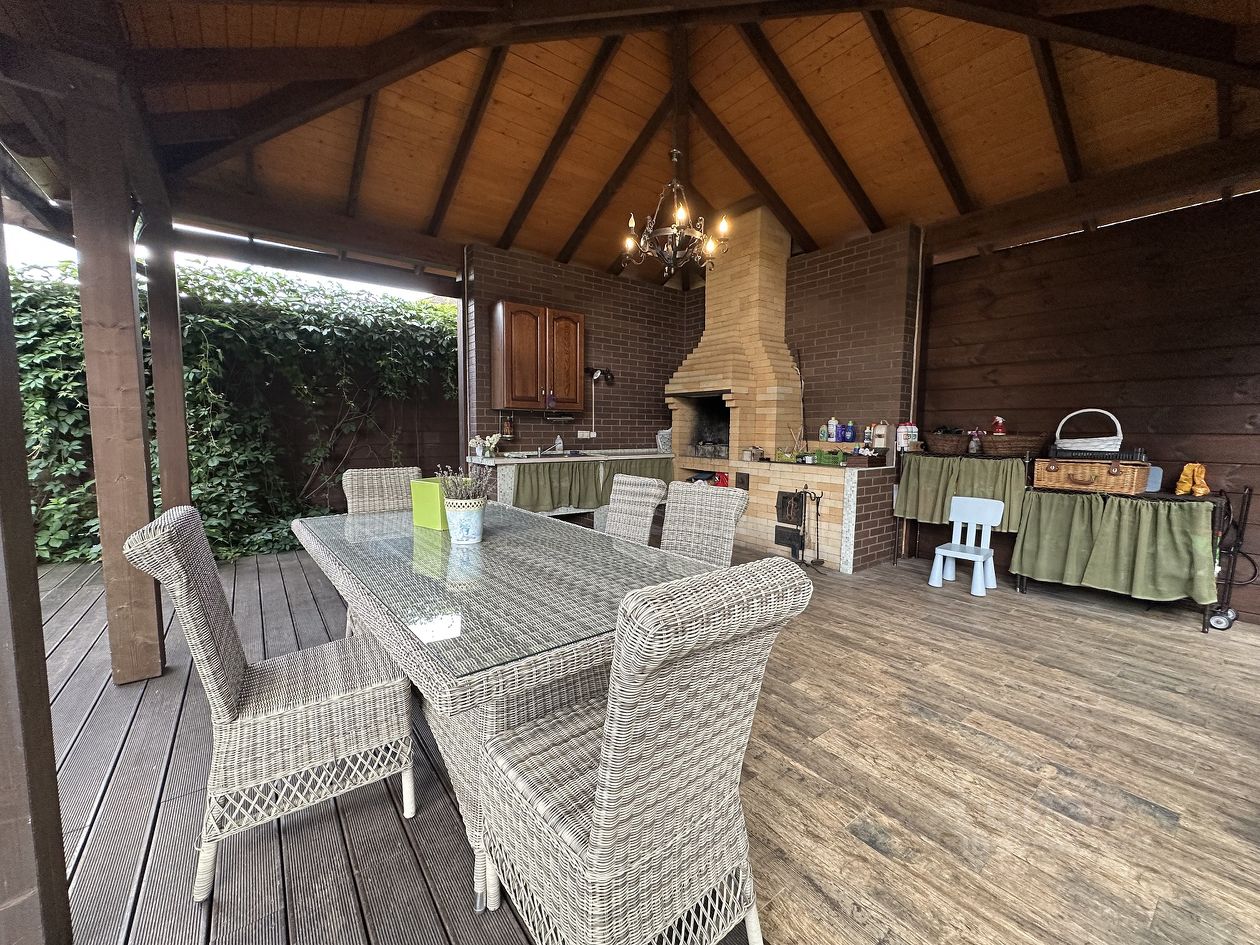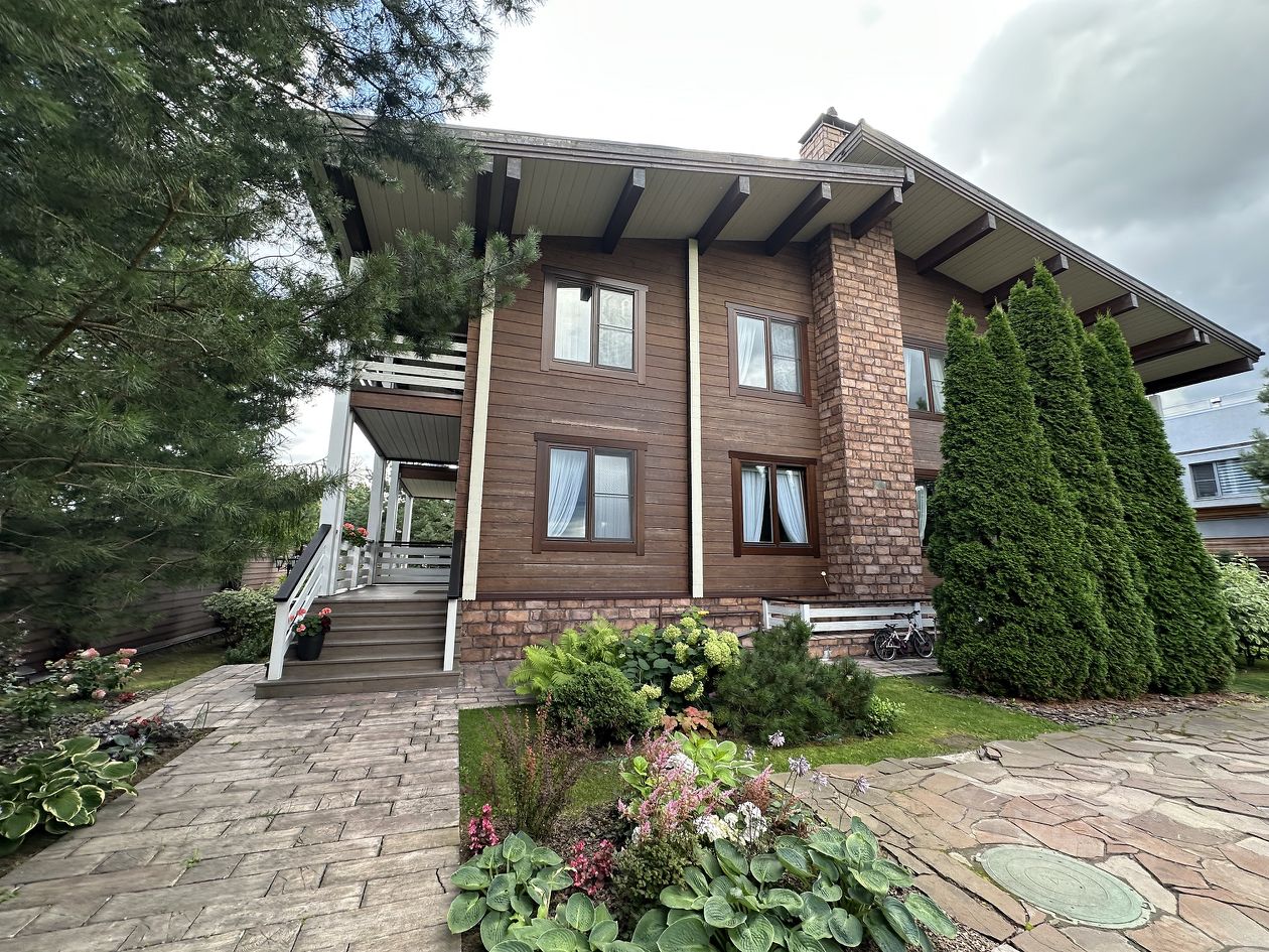 Новорижское, Ильинское, Рублево-Успенское шоссе, 20км, село Дмитровское, охраняемый кп Николина Поляна. 3-х уровневый Дуплекс с отдельным входом, сдаваемая площадь 300 кв.м, ухоженный участок 18 соток. Во втором части дуплекса проживает одна взрослая женщина, жильцов не беспокоит, присматривает за участком. Планировка: 1-ый этаж: холл-прихожая, кухня-гостиная с выходом на террасу, санузел с душевой. 2-ой этаж: 3 спальни (одна из которых с выходом на террасу), санузел с ванной. Цоколь: помещение свободного назначения, комната для персонала, санузел, прачечная, кладовая. Светлый, уютный дом, в отделке и декоре использованы только экологически чистые материалы. В каждой комнате/помещении много больших окон. Сказочно ухоженный участок, утопающий в многообразии цветов, декоративных посадок, елей и тд. Мангальная зона с летней кухней, камином - позволит Вам насладиться окружающим ландшафтом. Автоматические ворота, парковка на 2 авто. Елена