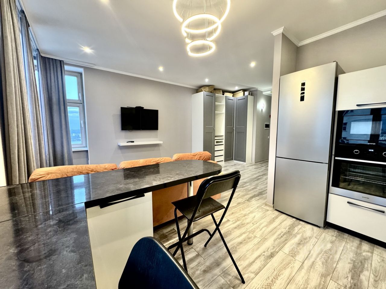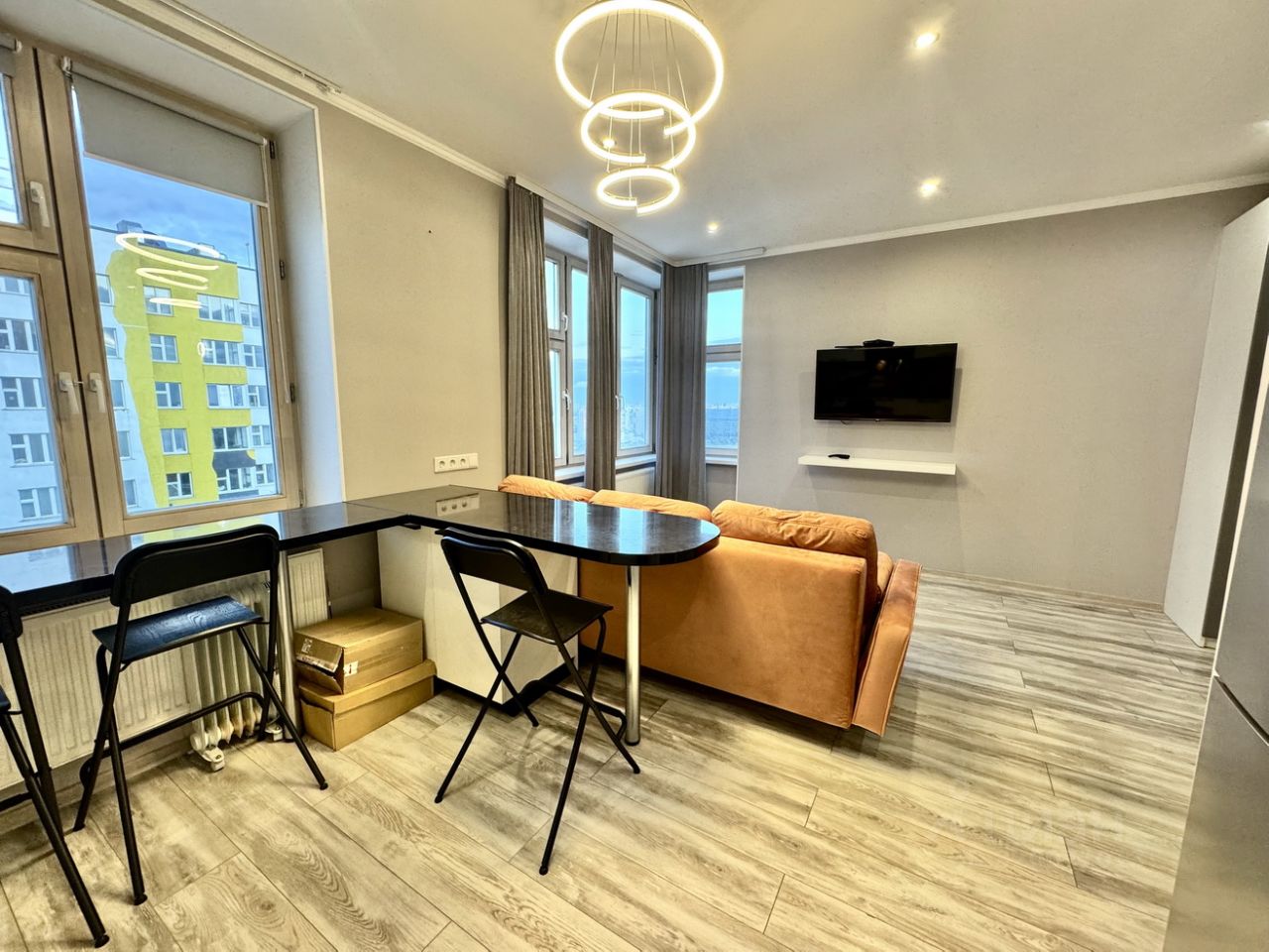 Чистая светлая квартира в интересном ЖК ART. Панорамный вид из окон с 42 этажа. Вся необходимая мебель, удобный угловой диван, вместительные шкафы. А также техника, стиральная машина, холодильник, телевизор.