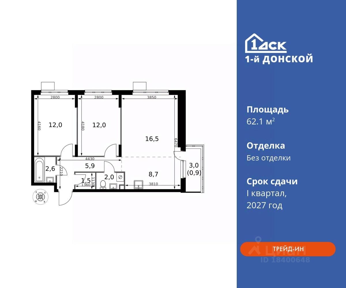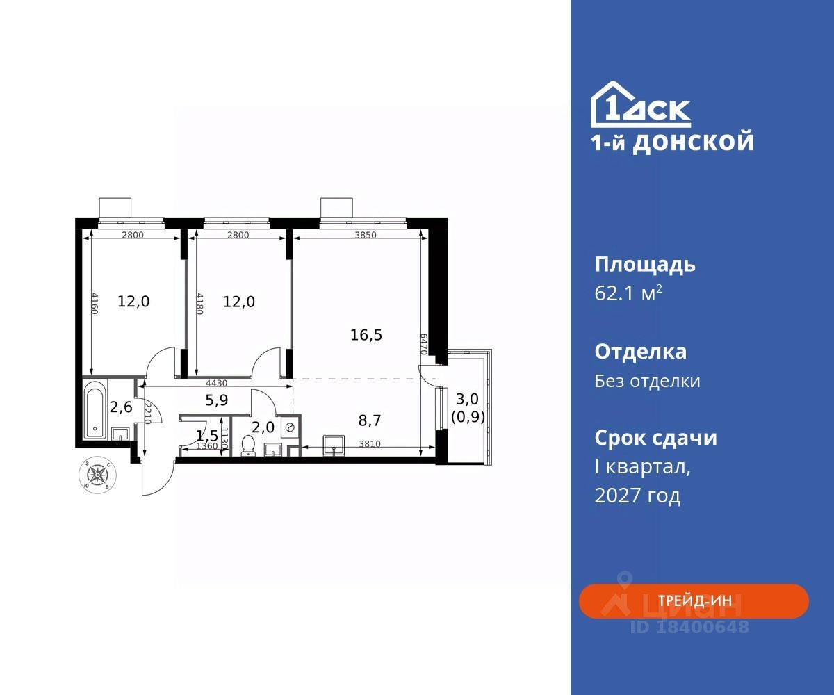 Максимальные скидки при 100% оплате. Trade-in вместо первоначального взноса - выгодно обменяйте вашу квартиру на новую! Прямая продажа от застройщика! Жилой Комплекс класса Комфорт плюс. Продаётся 3-к квартира номер 173 общей площадью 62.1 кв.м на 17-м этаже 24 этажного дома. Без отделки.