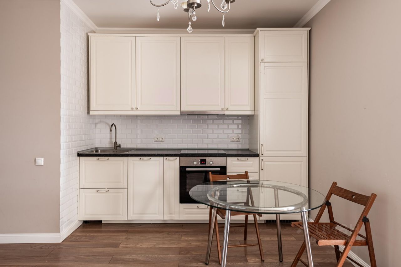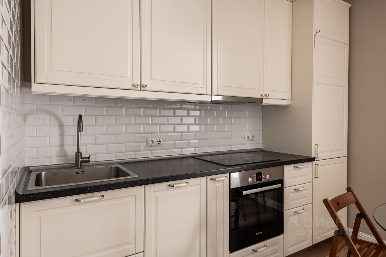 Отдельно выделена зона спальни. Продается со всей мебелью и техникой: встроенная кухня, посудомоечная машина Bosh, духовой шкаф, сварочная панель, холодильник, грамотно сделанная вытяжка, встроенная система шкафа-купе, стиральная машина, двуспальная кровать, бойлер на случай отключения горячей воды.