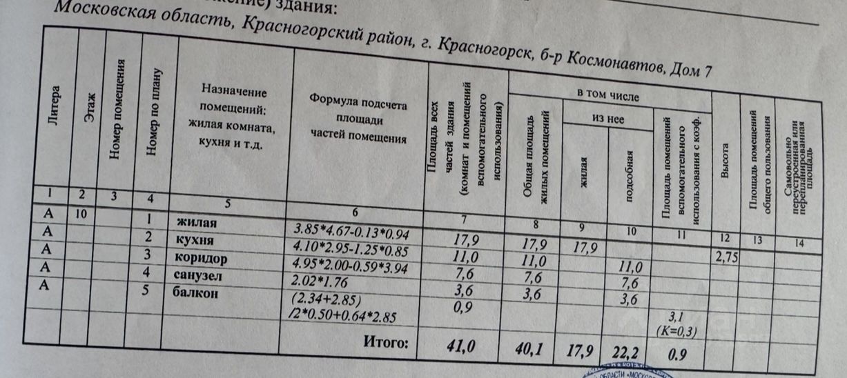 Продается уютная однокомнатная квартира в Красногорске по адресу: бульвар Космонавтов, 7. Один собственник, ДКП 2018 года, никто не зарегистрирован, продажа свободная, полная стоимость в Договоре. Общая площадь квартиры составляет 41 кв. м, из них 17.9 кв. м — жилая, а кухня — 11 кв. м. Квартира находится на 10 этаже 25-этажного монолитного дома, построенного в 2013 году. Высота потолков — 2.7 метра. Окна выходят во двор, что гарантирует тишину и спокойствие. В квартире сделан косметический ремонт. Просторная кухня позволяет удобно разместить обеденную зону. Из кухни есть выход на лоджию, где можно организовать зону отдыха. Санузел совмещенный и оформлен в светлых тонах, что расширяет пространство. Есть гардеробная комната. В квартире останется полностью вся мебель и крупная техника.