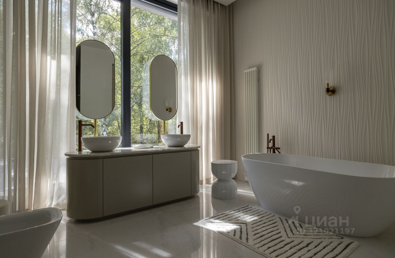 Выполнена дорогая качественная отделка. В интерьере использованы мебель, освещение и техника от ведущих европейских брендов: Baxter, Flamingo, Bonaldo, Ditre (Италия), кухня Leicht (Германия).