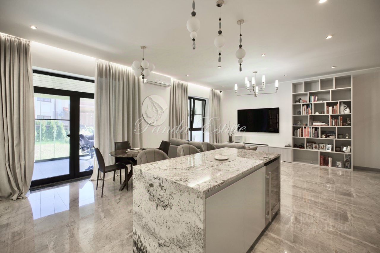 id 9628 Просторная планировка: продуманная архитектура и инженерные решения позволили создать по-настоящему комфортабельное жилое пространство для большой семьи или для приема гостей. Высокие потолки, качественные материалы, панорамное остекление и стильный дизайн интерьера создают ощущение простора и света На первом этаже вас встречает светлая и невероятно просторная гостиная зона, объединенная с современной кухней-столовой. Это сердце дома, где легко собраться всей семьей. Панорамное остекление от пола до потолка стирает границу между интерьером и природой, наполняя пространство светом и открывая прямой выход на собственный благоустроенный ухоженный участок с капельным поливом, готовым газоном, деревьями, зоной для отдыха с грилем Кухня: выполнена по индивидуальному проекту с использованием современных материалов. Встроена вся необходимая техника премиум-брендов: холодильник, духовой шкаф, варочная панель, стильная вытяжка, посудомоечная машина и винный шкаф. Гостиная: лаконичная мебель в стиле современная классика создают атмосферу уюта и безупречного вкуса На первом этаже также расположен удобный санузел с душем, просторная гардеробная, постирочная, бойлерная Второй этаж - это приватная зона отдыха, где расположены 4 спальни, каждая из которых является личным пространством для комфорта и релаксации. Мастер-спальня: настоящая жемчужина этажа. Она включает в себя спальную зону с гардеробной комнатой и собственным lux-санузел с полноразмерной душевой кабиной Еще три спальни подходят как для детей, так и для гостей. Они оформлены в спокойных, нейтральных тонах с качественной мебелью - кровати, шкафы-купе, рабочие столы Второй санузел: просторный совмещенный санузел с современной сантехникой и ванной Дом оснащен по последнему слову техники: система multi-зональная система кондиционирования, высокоскоростной интернет. В отделке использованы только натуральные и современные материалы: натуральный дуб, инженерная доска, керамогранит, декоративная штукатурка