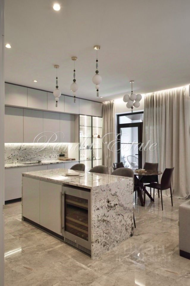 id 9628 Просторная планировка: продуманная архитектура и инженерные решения позволили создать по-настоящему комфортабельное жилое пространство для большой семьи или для приема гостей. Высокие потолки, качественные материалы, панорамное остекление и стильный дизайн интерьера создают ощущение простора и света На первом этаже вас встречает светлая и невероятно просторная гостиная зона, объединенная с современной кухней-столовой. Это сердце дома, где легко собраться всей семьей.