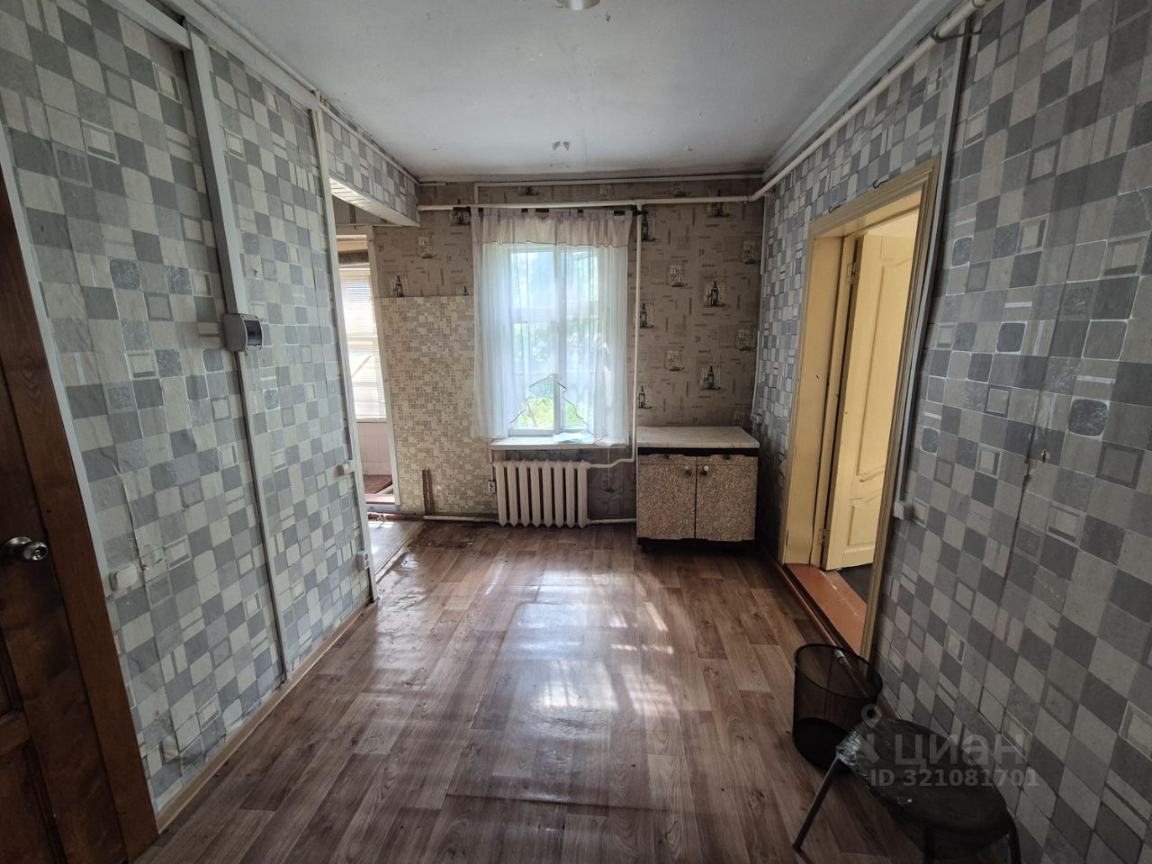 В доле дома (26/100) 3 комнаты, одна из которых проходная, кухня, туалет.