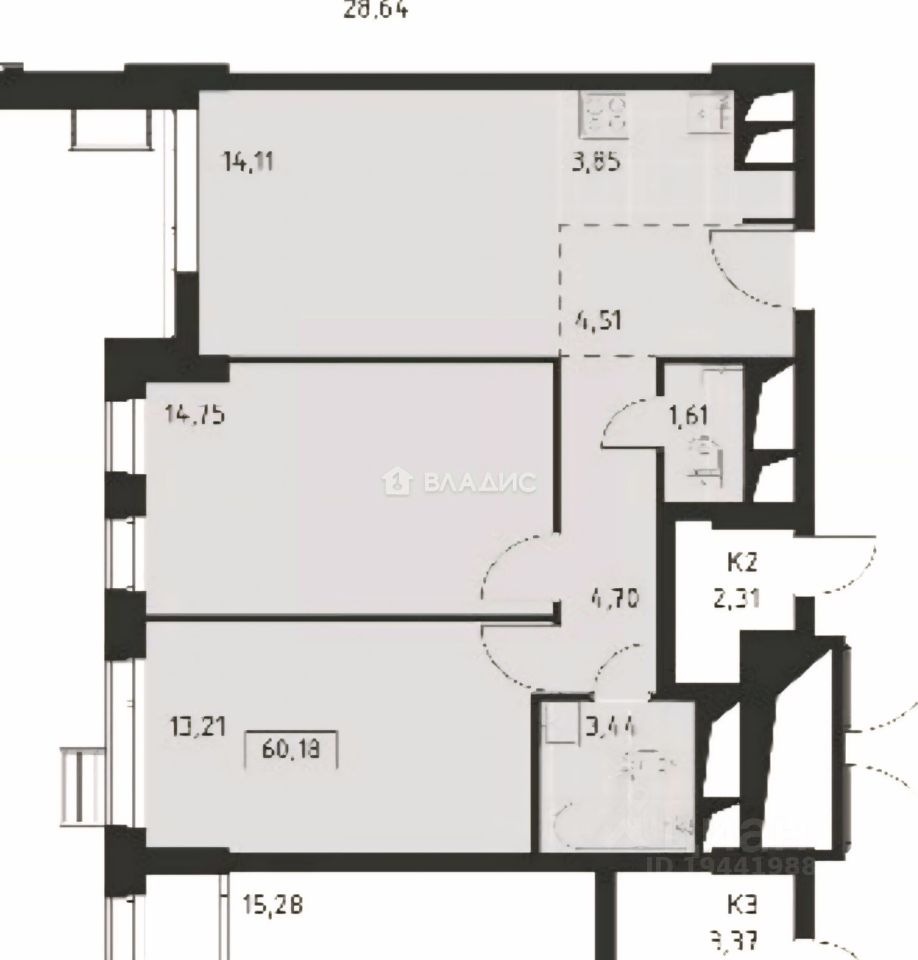 Площадь: 60 м² (жилая 30 м² + кухня-гостиная 20 м²) Этаж: 29/31 (панорамные виды) Высота потолков: 2.7 м Год сдачи: 2021 (монолитный дом)