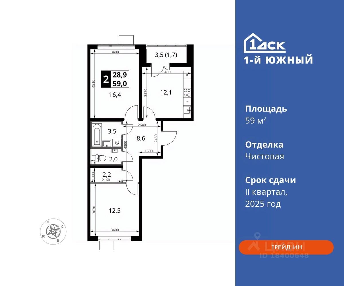 Особенности: - Квартира доступна к покупке в Trade-In. - Просторная спальня, в которой можно разместить большую кровать. - Линейная планировка - максимальная функциональность и удобство. - Раздельный санузел - Гостевой санузел - комфорт и удобство для ваших гостей. - Просторная мягкая зона - комфорт и уют для отдыха всей семьи. - Возможность добавить спальное место - дополнительный комфорт для гостей. - Просторная кухня - место для семейных ужинов и кулинарных экспериментов. - Ограниченное количество квартир на этаже - комфорт и уют без лишней суеты. - Гардеробная - удобство для хранения и организации вещей. - Ниша под шкаф - компактное и удобное место для вещей. - Лоджия - уютное место для отдыха и тишины. - Вид из окна: улица - МЦД5 в пешей доступности - Квартал с южным садом - Свои 3 детских сада и 2 большие школы