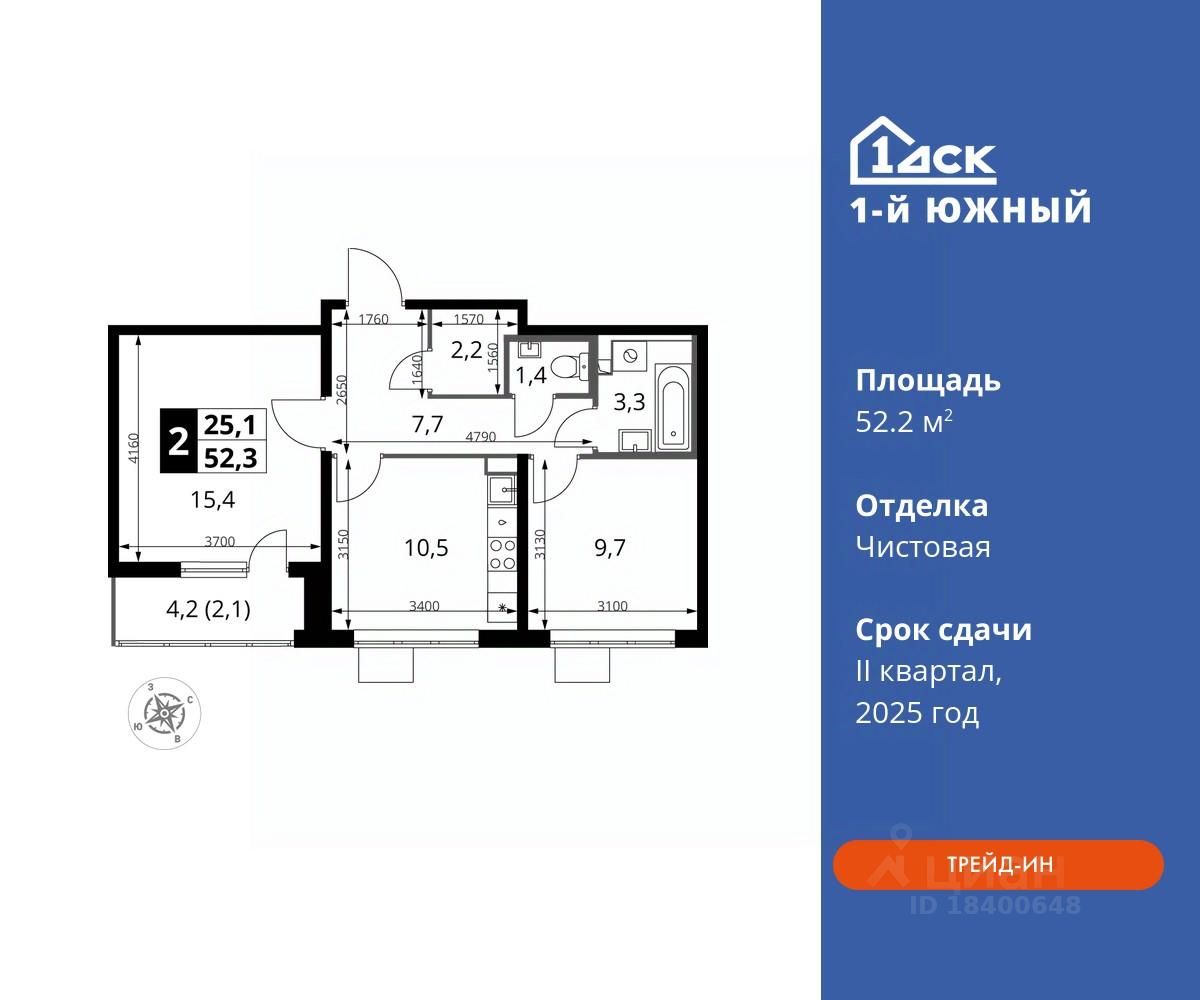 Особенности: - Квартира доступна к покупке в Trade-In. - Просторная спальня, в которой можно разместить большую кровать. - Линейная планировка - максимальная функциональность и удобство. - Раздельный санузел - Гостевой санузел - комфорт и удобство для ваших гостей. - Просторная мягкая зона - комфорт и уют для отдыха всей семьи. - Возможность добавить спальное место - дополнительный комфорт для гостей. - Ограниченное количество квартир на этаже - комфорт и уют без лишней суеты. - Гардеробная - удобство для хранения и организации вещей. - Просторная лоджия - идеальное место для уютных вечеров. - Вид из окна: двор - МЦД5 в пешей доступности - Квартал с южным садом - Свои 3 детских сада и 2 большие школы