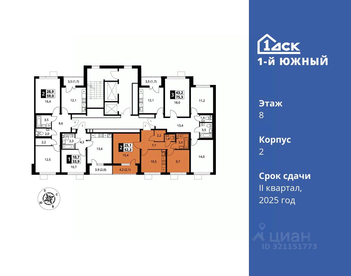 Максимальные скидки при 100% оплате. Trade-in вместо первоначального взноса - выгодно обменяйте вашу квартиру на новую! Корпус сдан! Прямая продажа от застройщика! Жилой Комплекс класса Комфорт плюс. Продаётся 2-к квартира номер 256 в сданном корпусе общей площадью 52.2 кв.м на 8-м этаже 25 этажного дома.