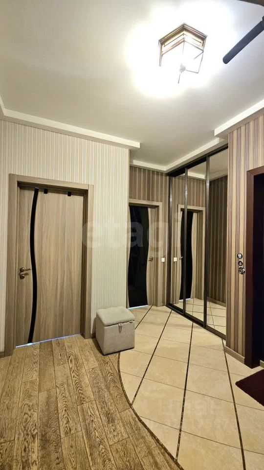 Квартира оформлена с заботой о вашем комфорте: в мокрых зонах на полу плитка, а в остальных помещениях — экологичная паркетная доска. Просторная прихожая с большой гардеробной комнатой решит все ваши проблемы с хранением одежды и обуви.
