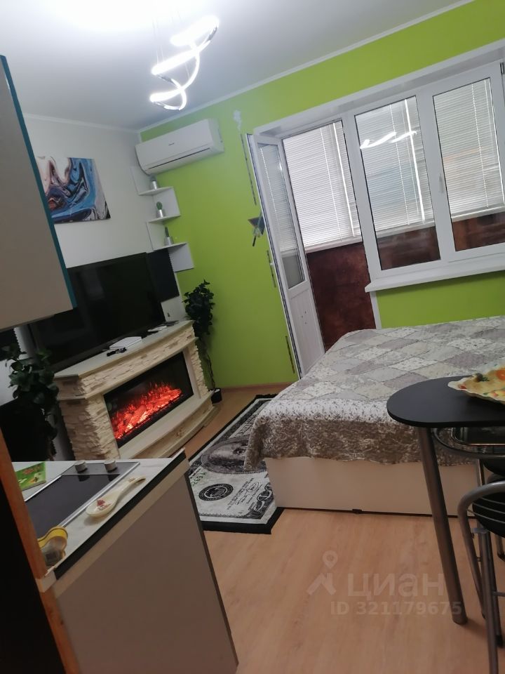 Смотрите, пожалуйста фотографии. Есть видео объекта, пришлю л /с после уточнения деталей. Ухоженный подъезд, доброжелательные соседи. Замечательная, очень уютная и стильная студия. Встроенная кухня фирмы ''Мария'', угловой шкаф для одежды, вся необходимая мебель и бытовая техника в наличии, включая кондиционер. Двухспальная кровать фирмы Аскона, с массажем аргомоушен. Электрический камин создаёт особый уют. Застекленная лоджия.