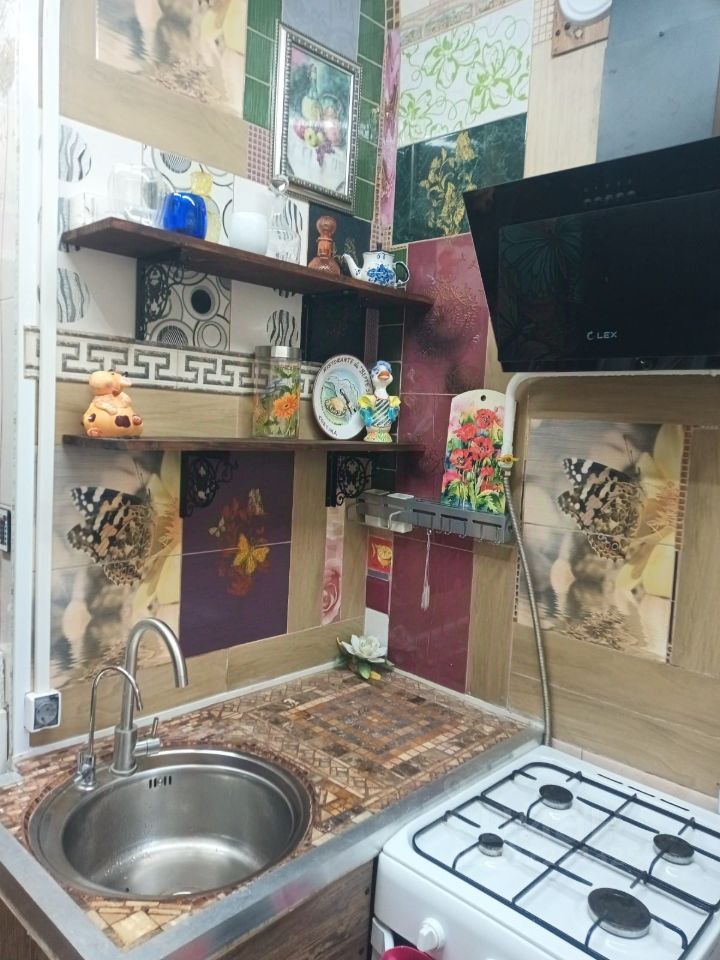яркая и весёлая, много бабочек, и присутствие их в элементах декора. Необы чный интересный декор и дизайн.Сдаётся на длительный срок.Залог РАЗБИВАЕТСЯ.