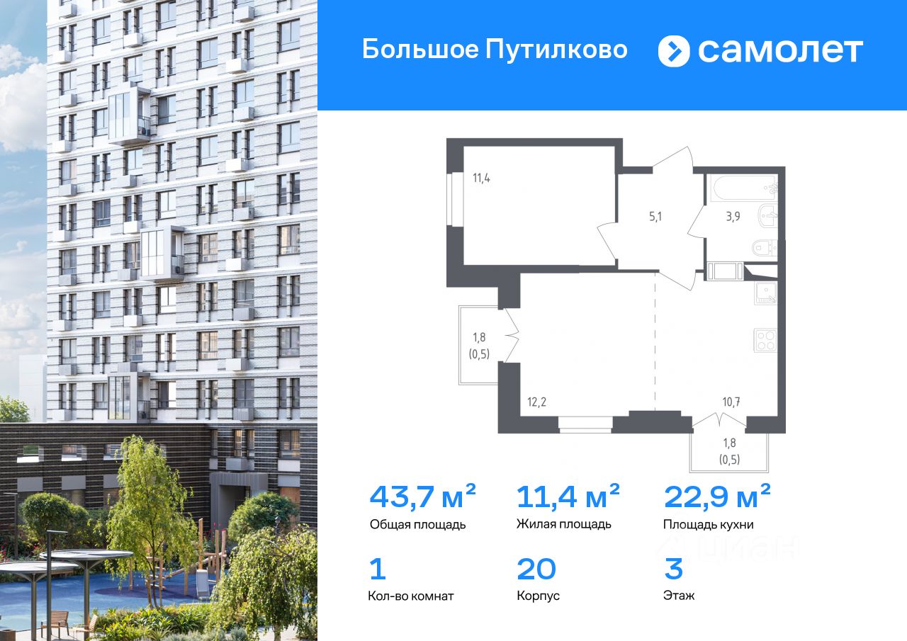 Предлагается 1-комнатная квартира комфорт-класса 43,7 кв.м в корпусе 20 на 3 этаже, в ЖК ''Большое Путилково'' Квартира с чистовой отделкой. Доступность дополнительных опций уточняйте у застройщика.