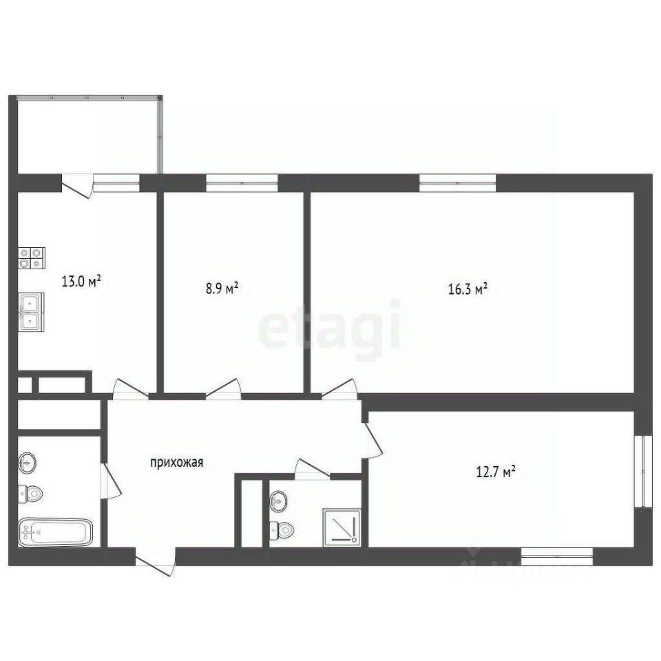 Просторные комнаты: Три изолированные спальни площадью от 12,7 до 16,3 м². Это редкая возможность для большой семьи или тех, кто ценит личное пространство.
