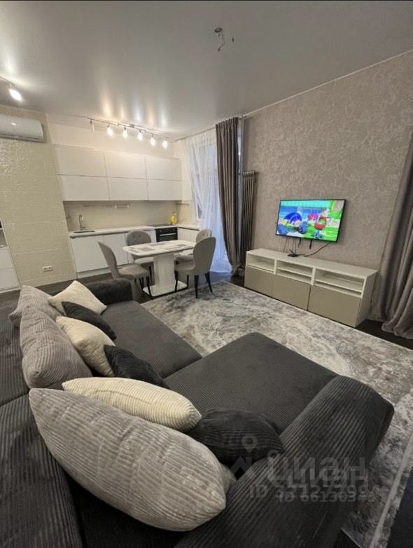 Квартира оформлена в дизайнерском стиле и полностью готова к проживанию. В комнатах и на кухне установлена современная мебель. Из техники есть все необходимое для комфортного проживания: кондиционер, холодильник, посудомоечная и стиральная машины, телевизор. В ванной комнате устроена душевая кабина. Окна выходят во двор, что обеспечивает тишину и спокойствие.