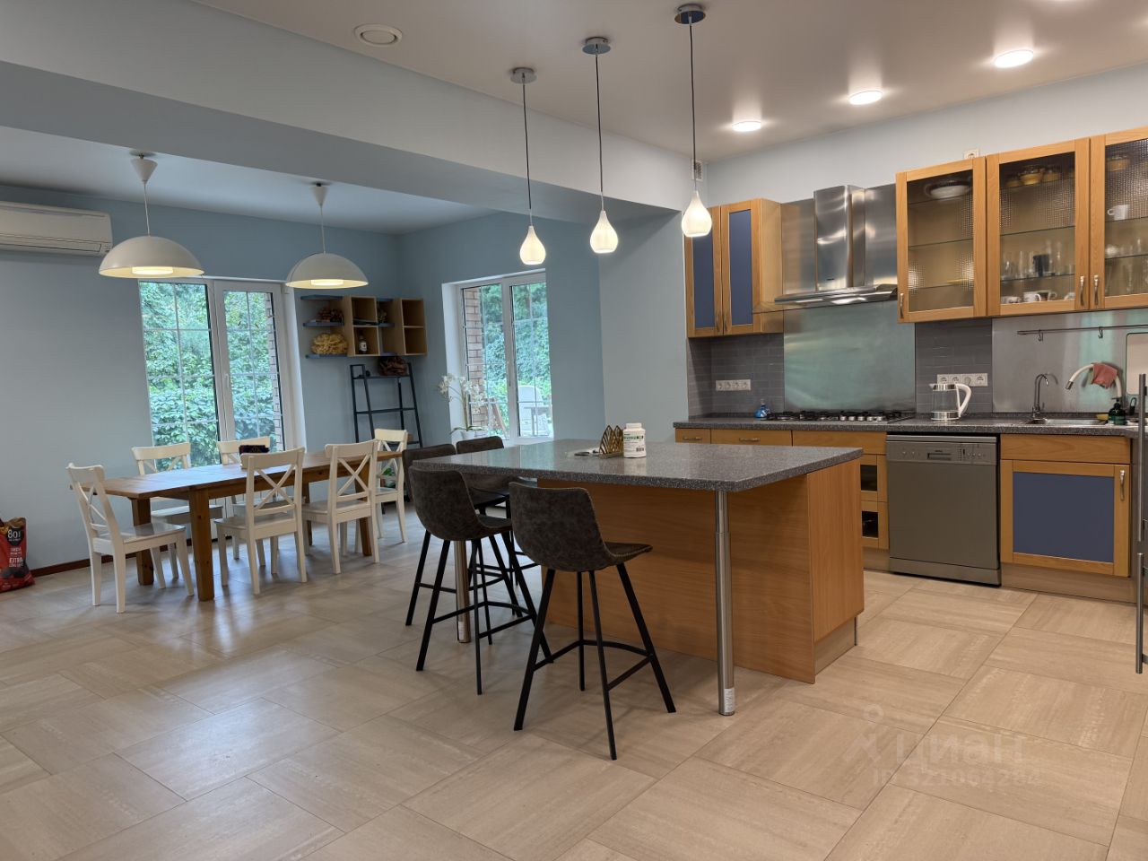 Уютный просторный коттедж прекрасно спланирован и создан для большой дружной семьи! В доме полы с подогревом, также подогреваемая лестница на входе в дом! Планировка включает в себя кухню-обеденную зону-гостиную, 6 спален, 3 санузла, 3 лоджии, 2 полноценную кухню с комнатой для персонала! - цокольный уровень: просторная кухня, спальная комната, совмещенный санузел с постирочной зоной, гардеробная, котельная, подвал для хранения продуктов, -1 уровень: просторная гостиная с дровяным камином, кухня-столовая, совмещенный санузел, 1 спальня, рабочий кабинет с лоджией, -2 уровень: 3 спальни, 2 лоджии, гостиная комната, гардеробная комната, совмещенный санузел, кладовая, -3 уровень: зона активного отдыха с биллиардом, тренажерами. Коттедж полностью меблирован и укомплектован всей бытовой техникой, холодильниками! Имеет 2 полноценные кухни, 1 из которых на цокольном этаже можно использовать для персонала! Вид из окон открывает потрясающие пейзажи на лесной массив со своими закатами и рассветами!
