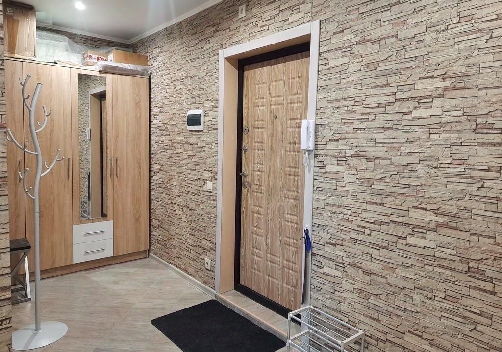 В квартире сделан современный евроремонт. Все необходимые для комфортного проживания мебель и техника уже есть: на кухне и в комнате установлена мебель, а также есть холодильник и стиральная машина. Планировка включает совмещенный санузел с ванной и уютную лоджию, где можно отдохнуть после напряженного дня.