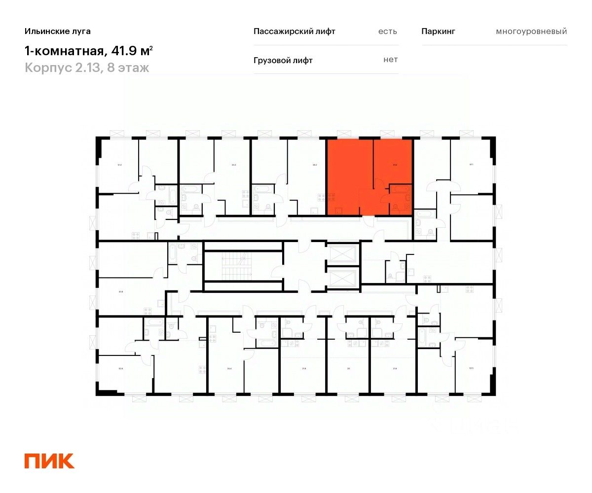 Продаётся 1-комн. квартира площадью 41,9 кв.м на 8 этаже 9 этажного дома (Корпус 2.13, Секция 3) проекта ПИК Ильинские луга. Светлый просторный подъезд на уровне земли, функциональная планировка, большие окна, c отделкой.