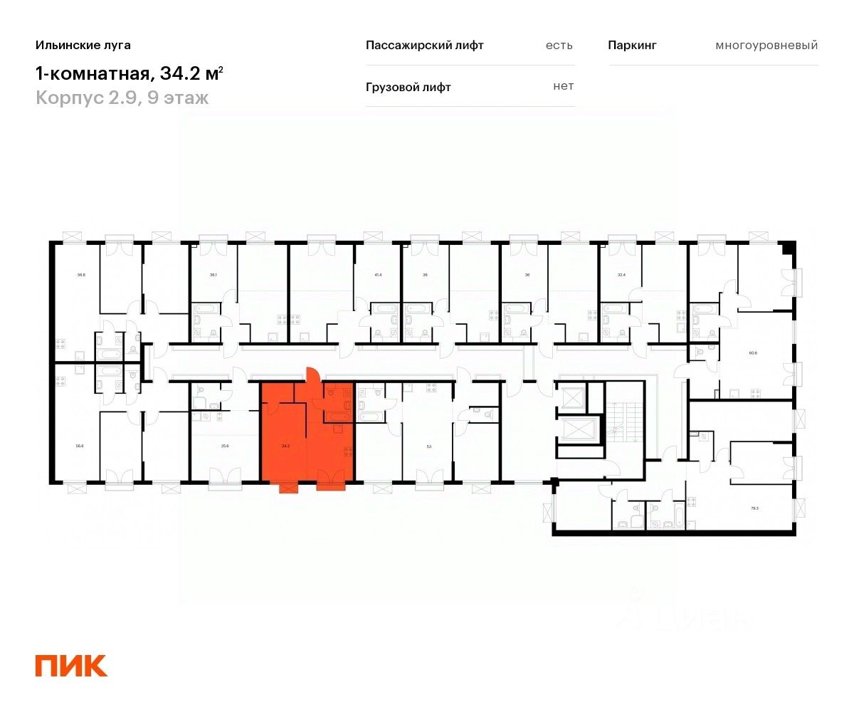 Продаётся 1-комн. квартира площадью 34,2 кв.м на 9 этаже 9 этажного дома (Корпус 2.9, Секция 3) проекта ПИК Ильинские луга. Светлый просторный подъезд на уровне земли, функциональная планировка, большие окна, c отделкой.