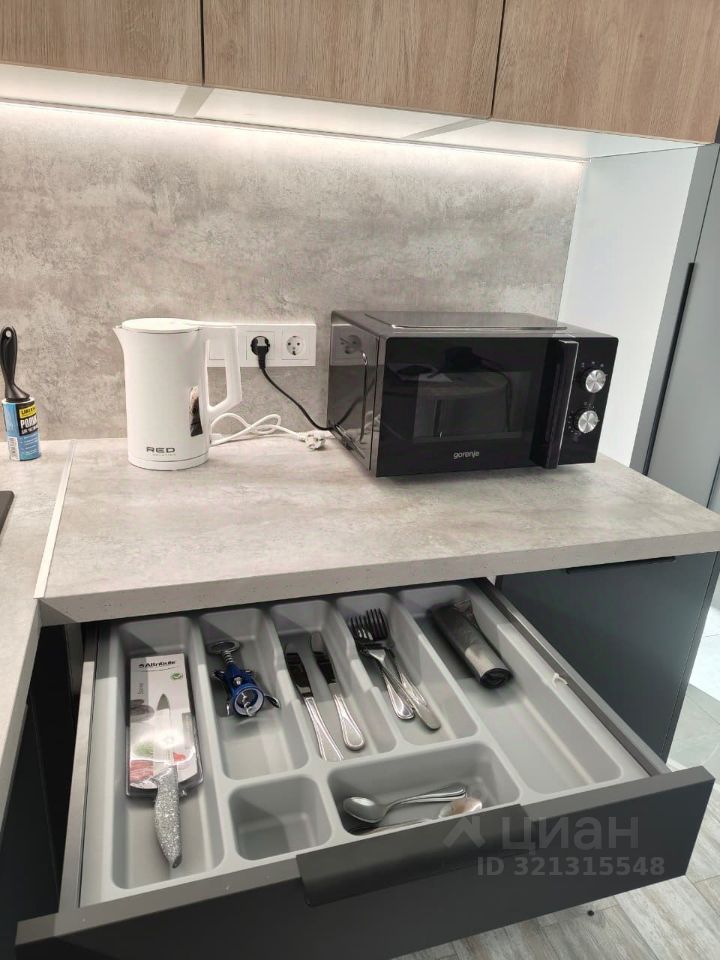 Сдаётся уютная однокомнатная квартира с дизайнерским ремонтом. Новый ремонт, никто не жил. Просторная кухня площадью 17 кв. м оборудована всей необходимой техникой: здесь есть холодильник, посудомоечная машина и стиральная машина.