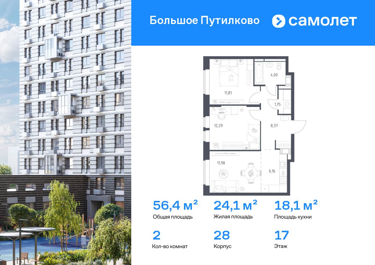 Строим кварталы для жизни с заботой о будущем. Предлагается 2-комнатная квартира комфорт-класса 56,36 кв.м в корпусе 28 на 17 этаже, в ЖК ''Большое Путилково'' Квартира с чистовой отделкой. Доступность дополнительных опций уточняйте у застройщика.