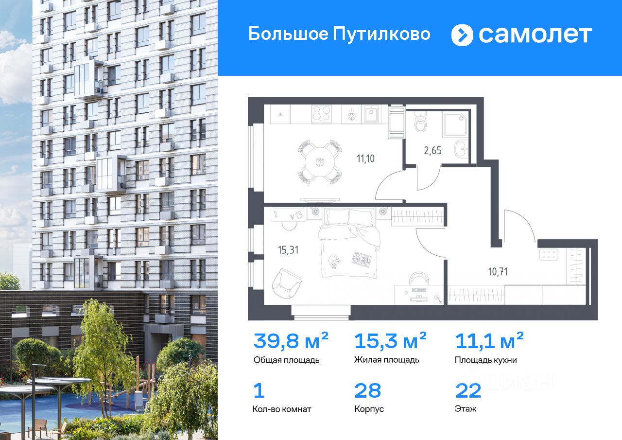 Строим кварталы для жизни с заботой о будущем. Предлагается 1-комнатная квартира комфорт-класса 39,77 кв.м в корпусе 28 на 22 этаже, в ЖК ''Большое Путилково'' Квартира без отделки. Доступность опции ''отделка'' и возможность комплектации мебелью и декором уточняйте у застройщика.