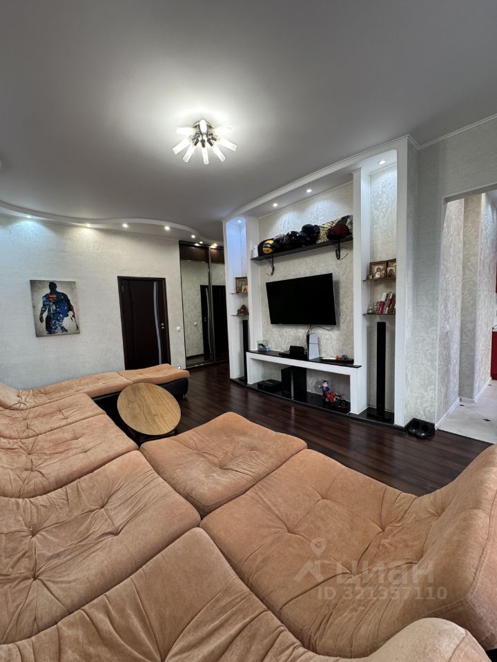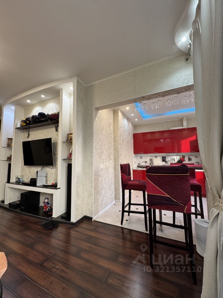 Общая площадь квартиры составляет 65.7 кв. м, жилая площадь — 45 кв. м, а кухня — 10 кв. м + балкон