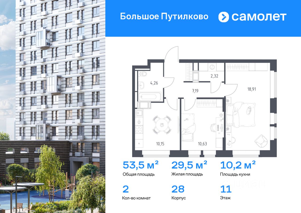 Строим кварталы для жизни с заботой о будущем. Предлагается 2-комнатная квартира комфорт-класса 53,46 кв.м в корпусе 28 на 11 этаже, в ЖК ''Большое Путилково'' Квартира без отделки. Доступность опции ''отделка'' и возможность комплектации мебелью и декором уточняйте у застройщика.