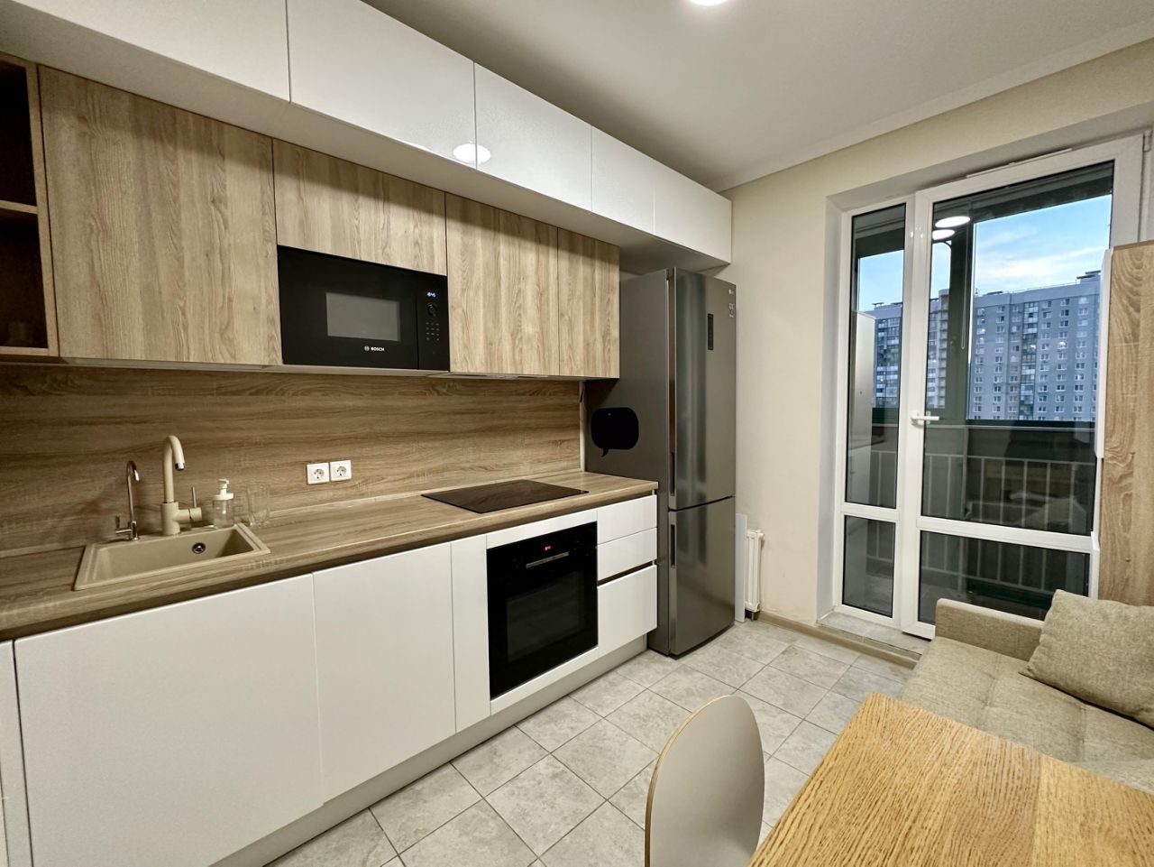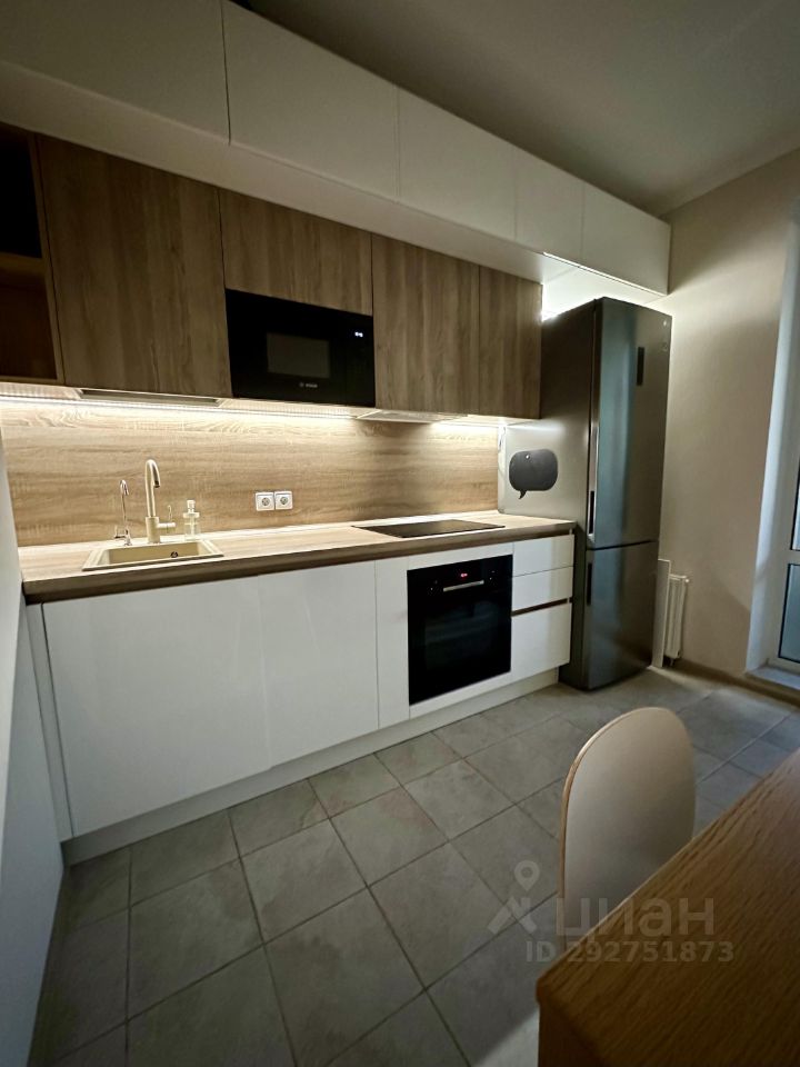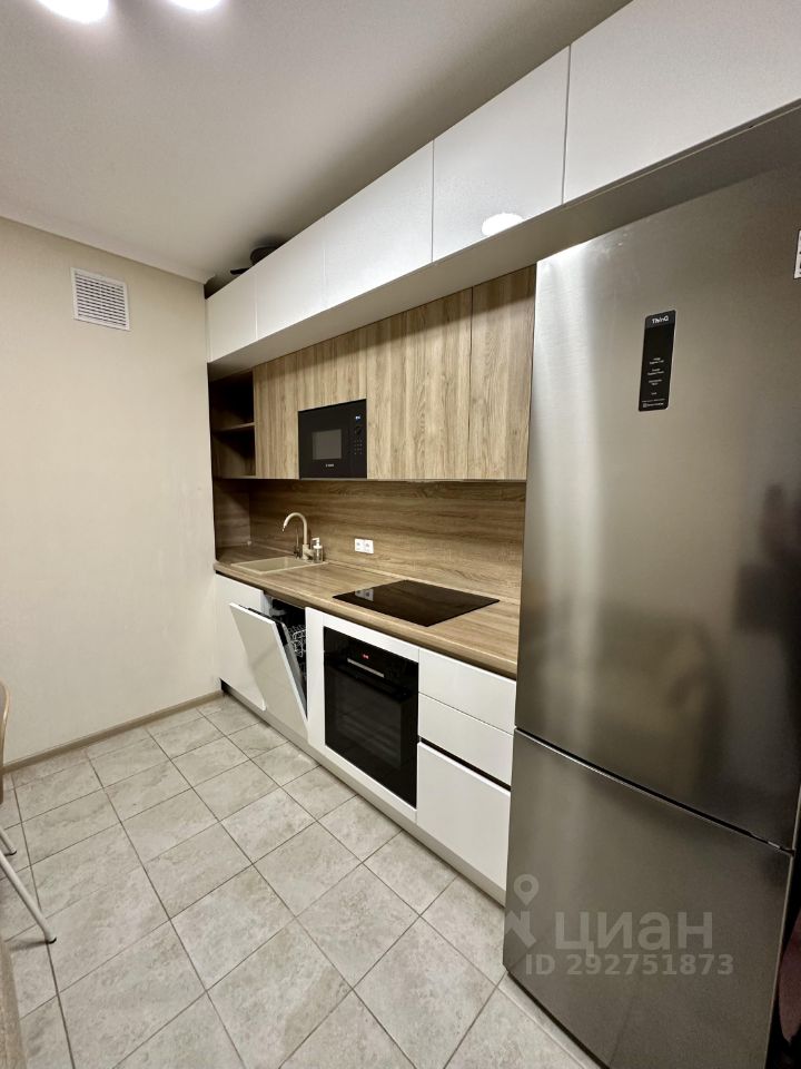 На кухне встроенный гарнитур под единой столешницей. Кухня укомплектована современной бытовой техникой, включая посудомоечную машину. Лоджия. Сан узел совмещен, евро стандарт. Интернет. Железная дверь.