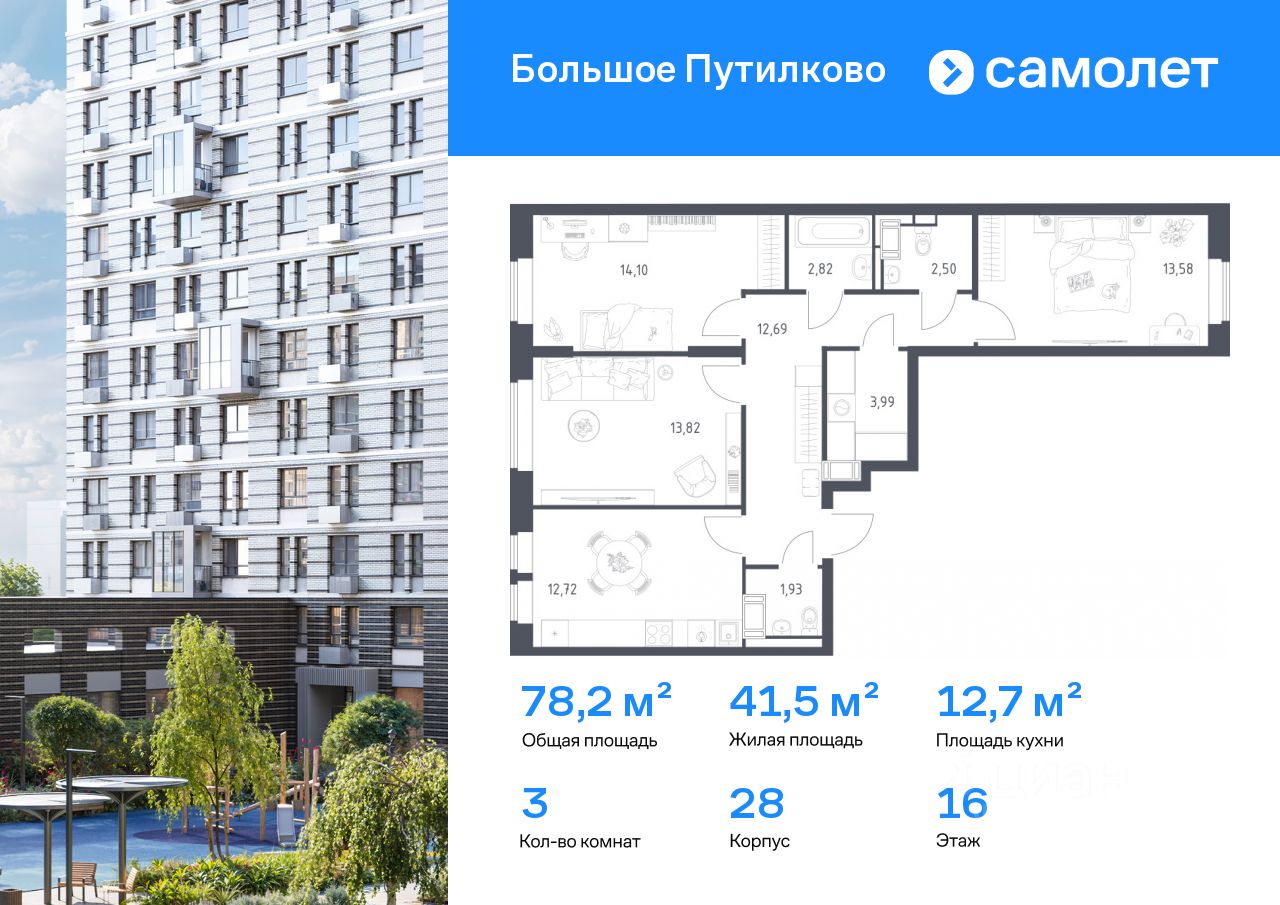 Строим кварталы для жизни с заботой о будущем. Предлагается 3-комнатная квартира комфорт-класса 78,15 кв.м в корпусе 28 на 16 этаже, в ЖК ''Большое Путилково'' Квартира с чистовой отделкой. Доступность дополнительных опций уточняйте у застройщика.
