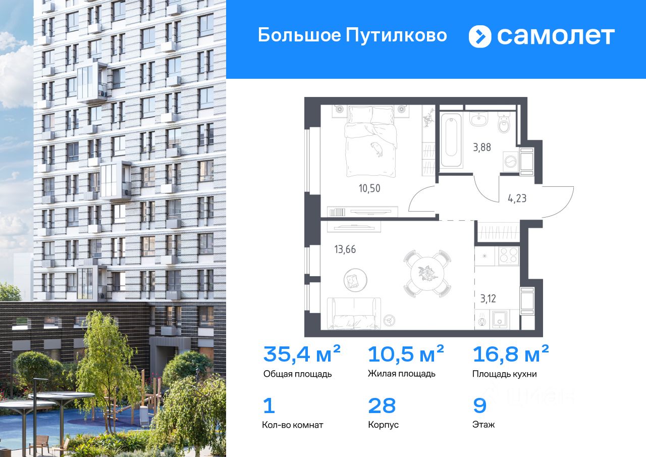 Строим кварталы для жизни с заботой о будущем. Предлагается 1-комнатная квартира комфорт-класса 35,39 кв.м в корпусе 28 на 9 этаже, в ЖК ''Большое Путилково'' Квартира без отделки. Доступность опции ''отделка'' и возможность комплектации мебелью и декором уточняйте у застройщика.
