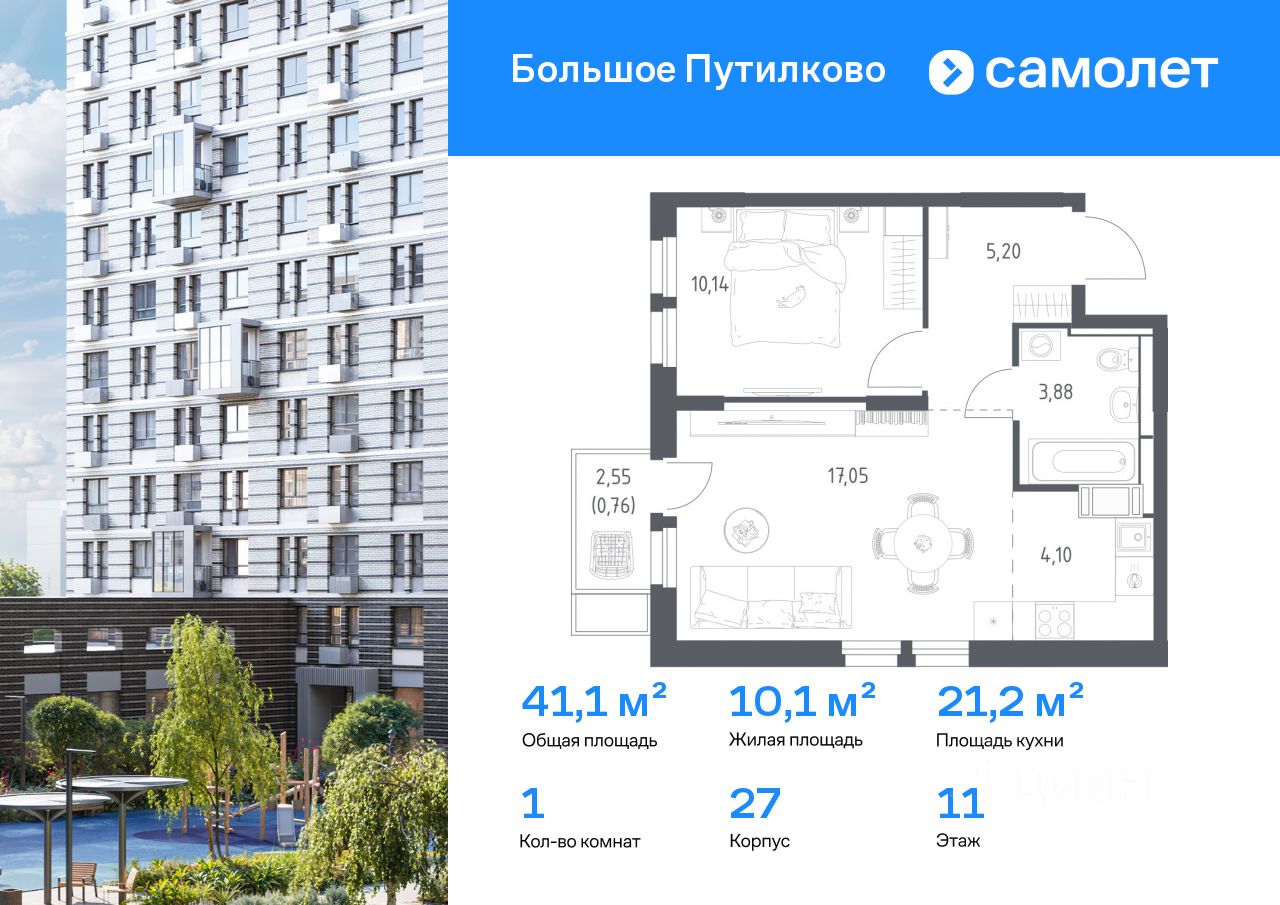 Предлагается 1-комнатная квартира комфорт-класса 41,13 кв.м в корпусе 27 на 11 этаже, в ЖК ''Большое Путилково'' Квартира с чистовой отделкой. Доступность дополнительных опций уточняйте у застройщика.