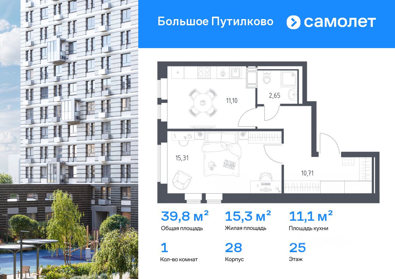Предлагается 1-комнатная квартира комфорт-класса 39,77 кв.м в корпусе 28 на 25 этаже, в ЖК ''Большое Путилково'' Квартира без отделки. Доступность опции ''отделка'' и возможность комплектации мебелью и декором уточняйте у застройщика.