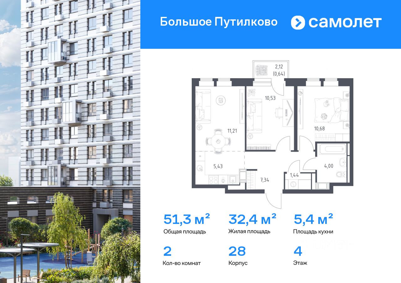 Предлагается 2-комнатная квартира комфорт-класса 51,27 кв.м в корпусе 28 на 4 этаже, в ЖК ''Большое Путилково'' Квартира без отделки. Доступность опции ''отделка'' и возможность комплектации мебелью и декором уточняйте у застройщика.