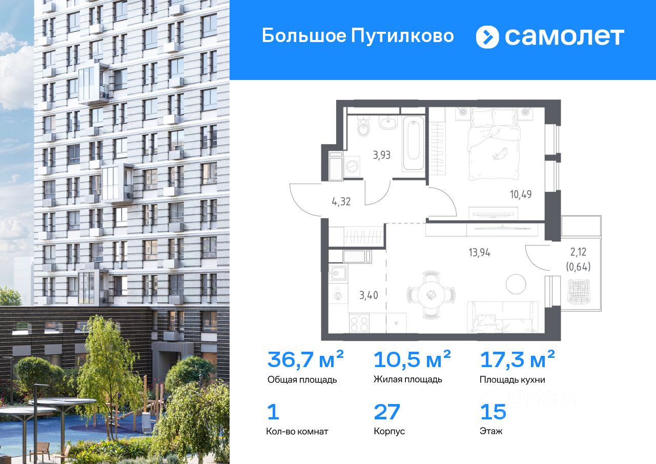 Строим кварталы для жизни с заботой о будущем. Предлагается 1-комнатная квартира комфорт-класса 36,72 кв.м в корпусе 27 на 15 этаже, в ЖК ''Большое Путилково'' Квартира с чистовой отделкой. Доступность дополнительных опций уточняйте у застройщика.
