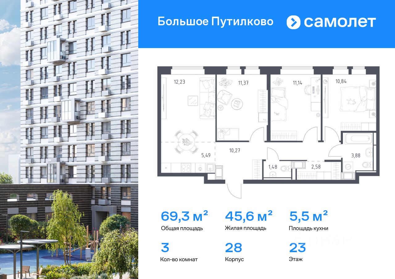 Предлагается 3-комнатная квартира комфорт-класса 69,28 кв.м в корпусе 28 на 23 этаже, в ЖК ''Большое Путилково'' Квартира без отделки. Доступность опции ''отделка'' и возможность комплектации мебелью и декором уточняйте у застройщика.