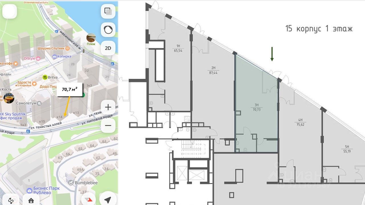 Помещение в стилобате напротив бизнес-центра и пешеходного перехода к нему, в прямой видимости от остановки, на выезде из района. Пешеходы от метро Строгино (25 минут пешком) спускаются в квартал также со стороны бизнес-центра. Витринное остекление реклама будет видна издалека с разных сторон. Открытая планировка, мощность электричества 13 кВт с возможностью увеличения, высота потолка 4 метра. Все лоты в проекте с полной отделкой, время на заселение людей минимальное. Масштабный ЖК со значительной емкостью рынка 30 000 000 жителей после сдачи всех корпусов. Расположение: между Новорижским шоссе и Москва-рекой, на внешней стороне МКАД. Пешая доступность от района Строгино. В 2027 году откроется станция метро Липовая роща Рублево-Архангельской ветки непосредственно в ЖК. Дом введен в эксплуатацию, ключи в течение 2 месяцев.