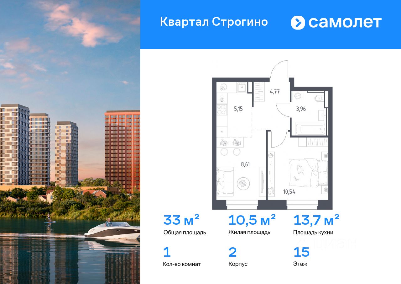 Предлагается 1-комнатная квартира комфорт-класса 33,03 кв.м в корпусе 2 на 15 этаже, в ЖК ''Квартал Строгино'' Квартира без отделки. Доступность опции ''отделка'' и возможность комплектации мебелью и декором уточняйте у застройщика.