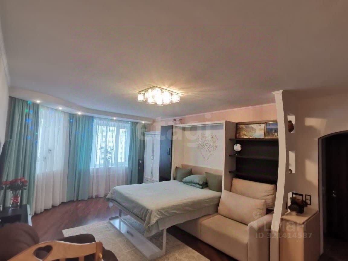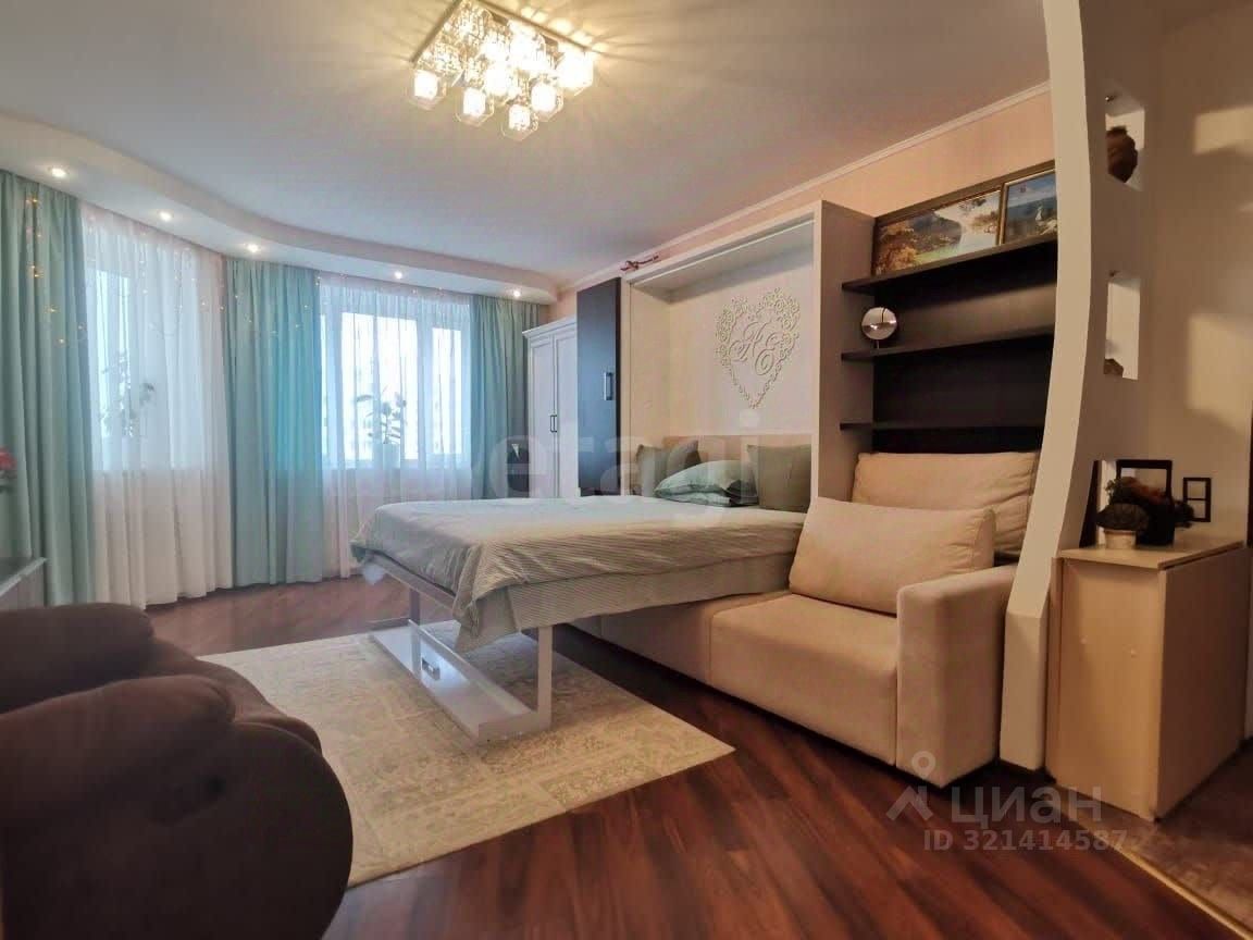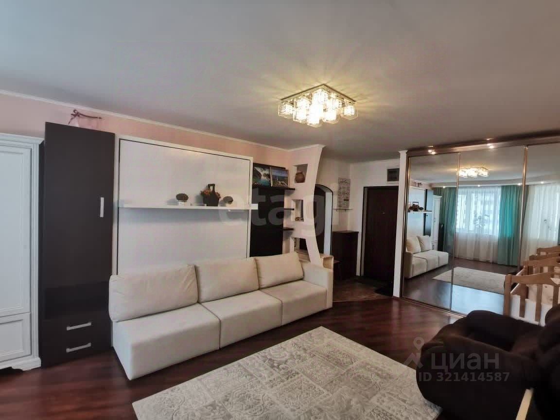 О квартире- Общая площадь квартиры 42 кв.м. (с учетом балкона 43,4 кв.м.): Комната - 19,7 кв.м. Кухня - 8,5 кв.м. Балкон 1,4 кв.м. (застеклен), Санузел просторный (совмещенный): Высота потолков 2,7 м. Большая часть мебели остается (кухня+диван, гарнитур в комнате, встроенные шкафы).