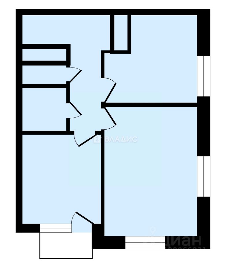 Общая площадь 54.2 метра, раздельные комнаты, кухня 10.5 из кухни - выход на лоджию.