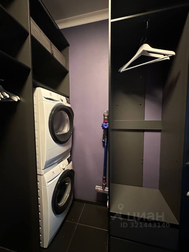 В квартире установлена современная техника: посудомоечная машина, духовой шкаф, стиральная и сушильная машины.