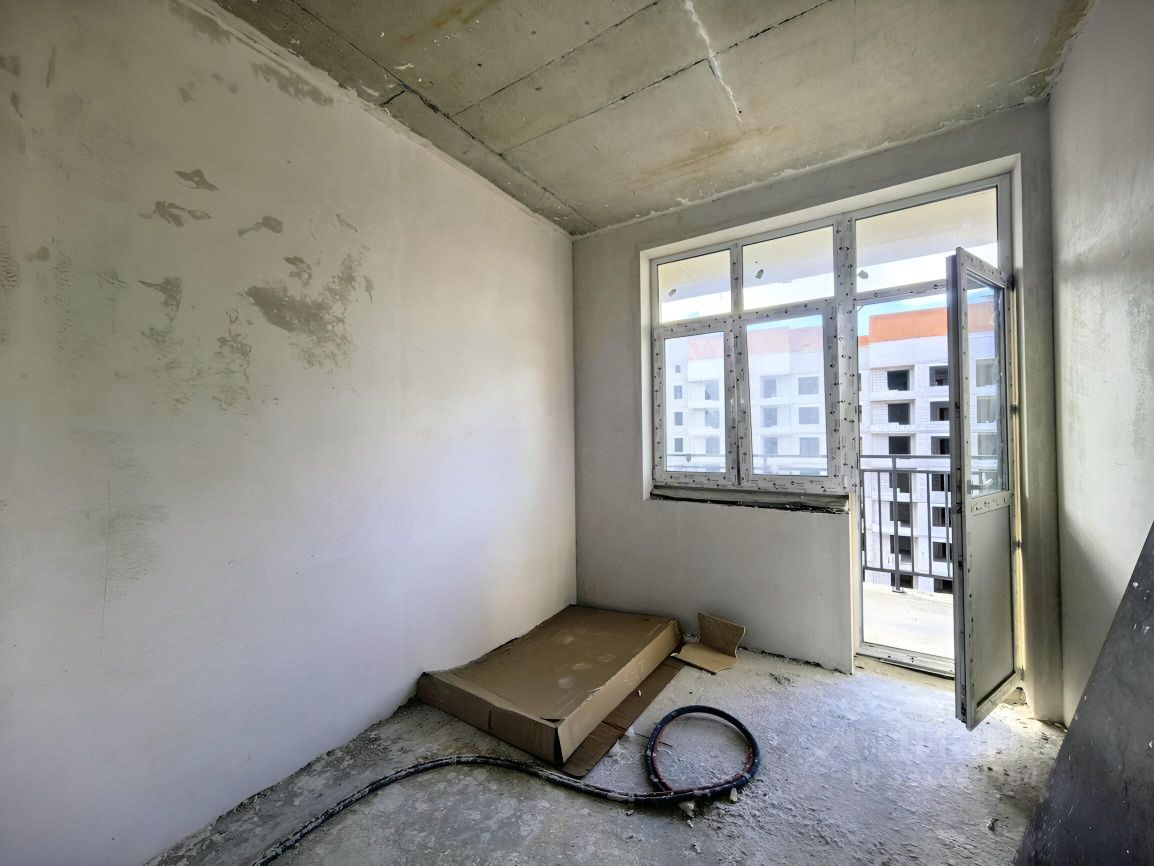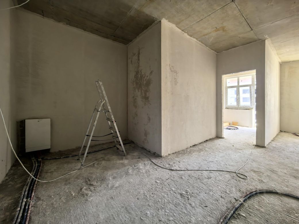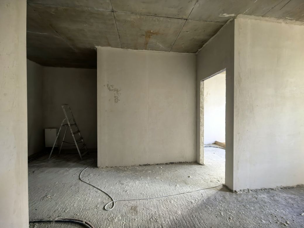 Квартира без отделки. Сделана планировка, перегородки из ПГП, в зоне кухни и ванной влагостойкие. Сделана механизированная штукатурка с полной геометрией, углы везде 90 градусов.