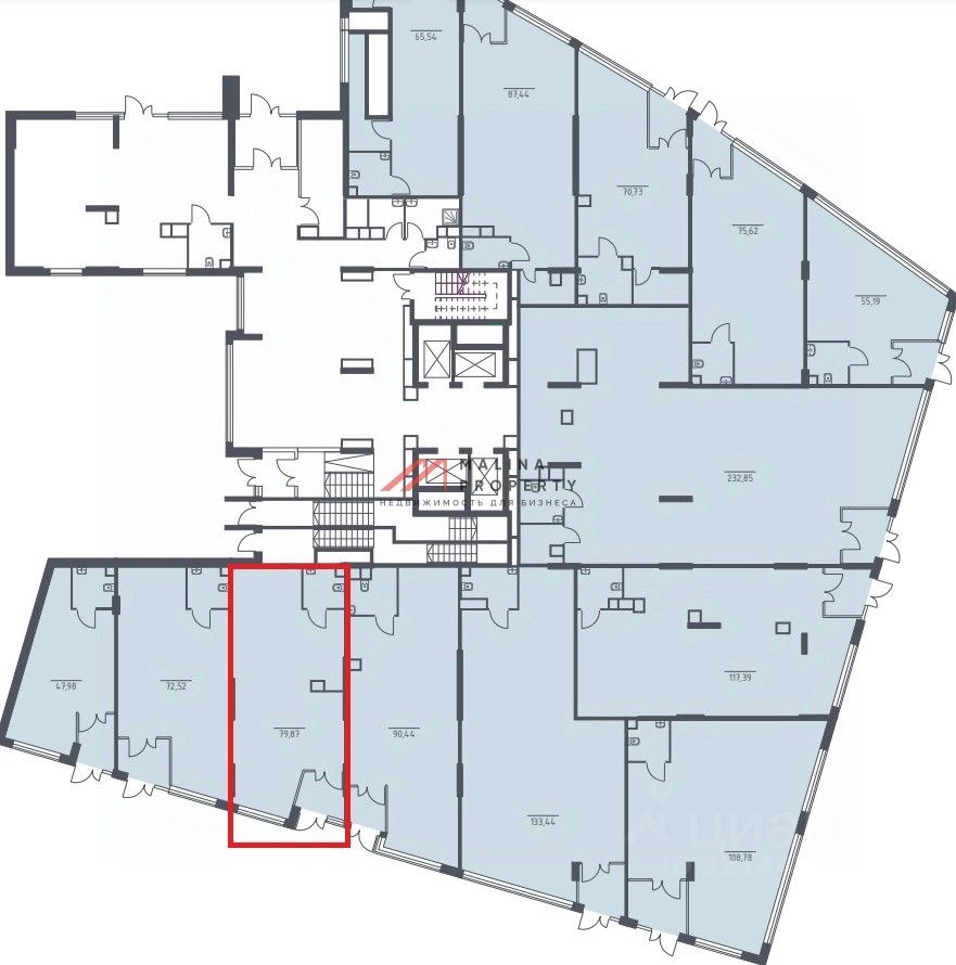 Помещение 78,6 м2, располагается на 1-м этаже в стилобатной части дома, отдельный вход с фасада, высота потолка 4 м, витринные окна по фасаду. Электрическая мощность 15 кВт. Место для размещения рекламы.